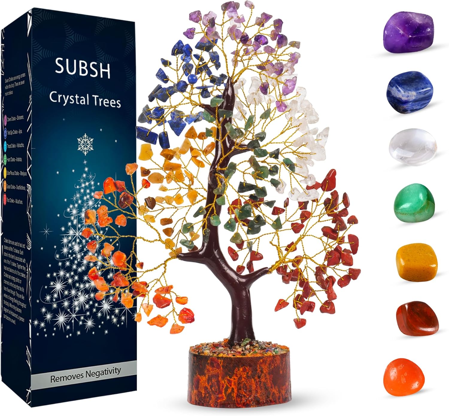 | Included Components | a set of 7 crystal pyramids, golden wire trunk covered in m seal and wooden base |