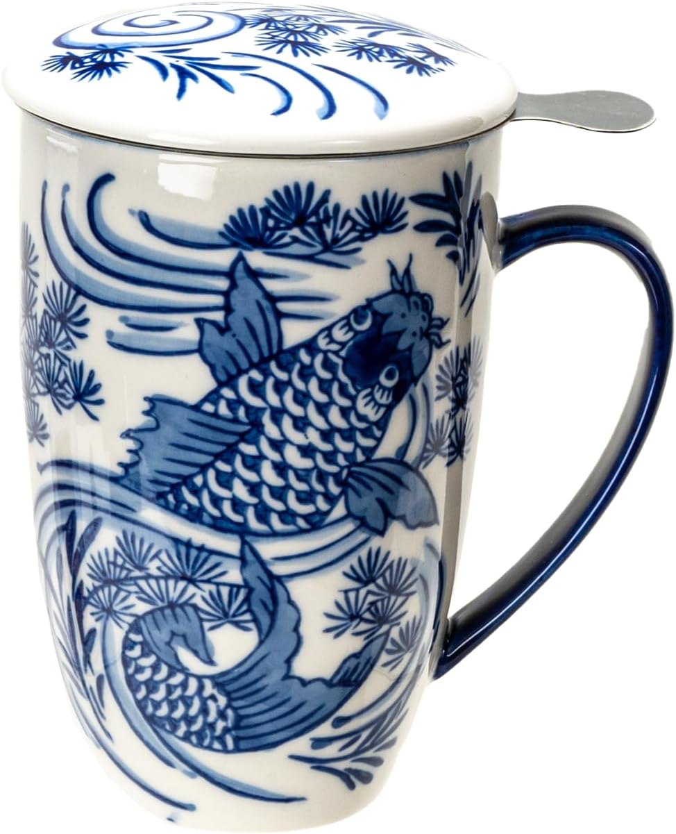The Urban Tokyo Tea Mug transforms your daily tea ritual into an elegant experience. This beautifully designed 15-ounce porcelain mug features a famous painting of Hokusai Kanagawa Great Wave. The included stainless steel infuser allows you to steep loose leaf tea directly in the mug, giving you full control over the strength and flavor of your brew. The convenient lid serves multiple purposes: it keeps your beverage hot longer, acts as a cover while steeping, and provides a resting place for the infuser once your tea reaches the perfect strength. Whether you're enjoying a morning cup at home or need a reliable tea companion at the office, this versatile mug handles it all. The generous 15-ounce capacity means fewer refills during your workday, while the sturdy handle ensures a comfortable grip. The smooth porcelain construction is easy to clean and maintains its beautiful appearance through daily use. Perfect for tea enthusiasts who appreciate both functionality and aesthetic appeal in their drinkware.