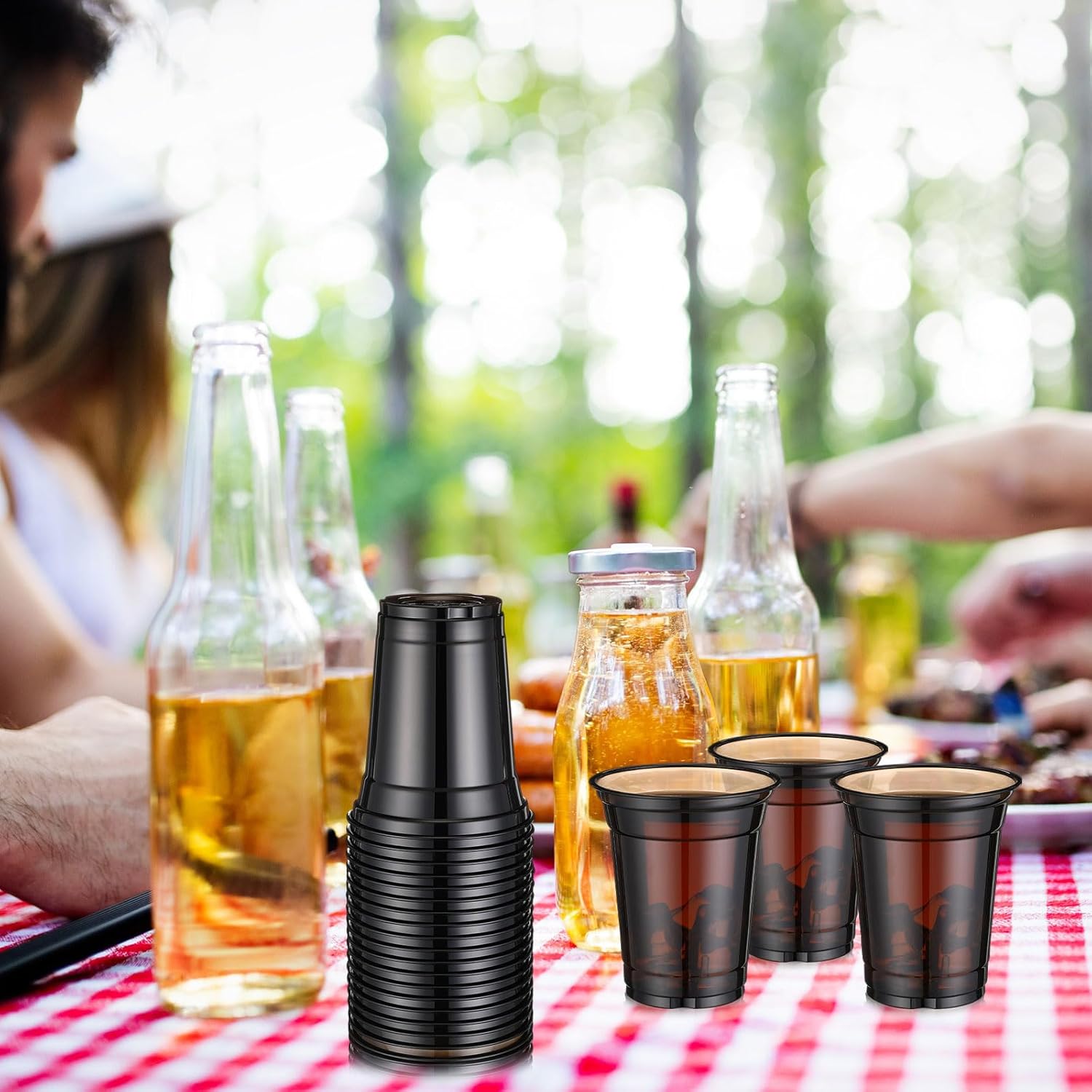 Features: Versatile: Whether you're hosting a birthday party, running a coffee stand, serving smoothies at the gym, or catering for company events, these versatile cups meet your various needs and showcase your stylish taste. Transparent Black Cups: These disposable black transparent cocktail Cups combine black and transparent materials in their design. The glass body has a certain degree of transparency, which can clearly show the color and layering of the drink, enhancing its visual appeal. Specifications: Material: PET Color: black Size: Capacity: about 12oz Bore: about 3.62 inches/ 92 mm Package includes: 200 X 12oz plastic cups Notes: Manual measurement, please allow slight errors on size. The color may exist a slight difference due to different screen displays
