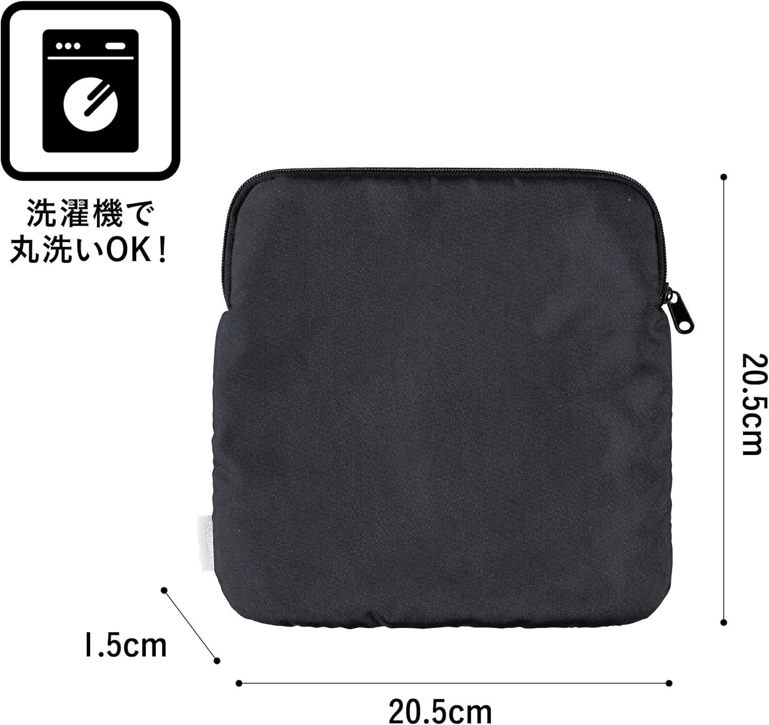 Product Size: Width 8.1 x Length 8.1 x Thickness 0.6 inches (20.5 x 20.5 x 1.5 cm). Product Weight: 1.9 oz (55 g). Main Material: [body] (surface) polyester, (back) polyester, nylon, [zipper] PET This product is not waterproof. Please note that water may penetrate if wet items are inserted. If it gets dirty, please wash it in the washing machine. Do not use chlorine detergent or bleach