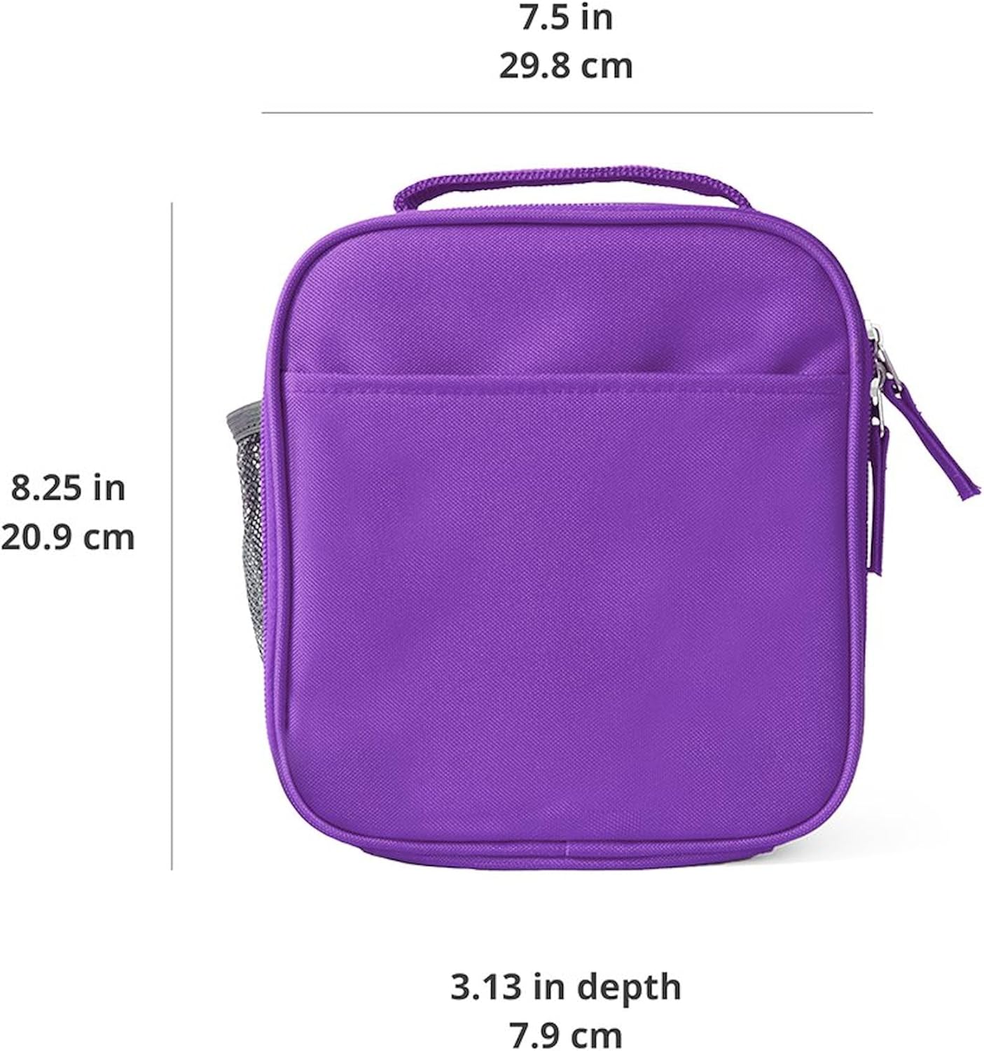 This lunch box takes lunchtime and snack time to whole new levels! Choose from 1000s of unique designs and original artwork. The lunch bag is made of polyester. The lunch box features food-safe wipe-clean lining, a molded interior for hot/cold containers, inner and outer zip, and side mesh water bottle pockets. Spot Clean. Lunch box measures 7.5"Wx8.25"Hx3.125"D