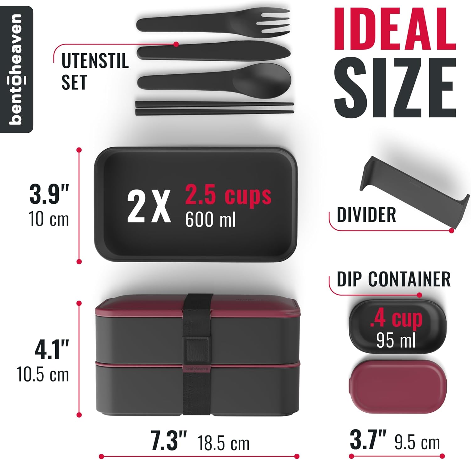 | Included Components | 1 Divider, 1 Sauce cup, 2 Compartments (2x 20oz), Full set of cutlery and chopsticks, Top lid & elastic band |