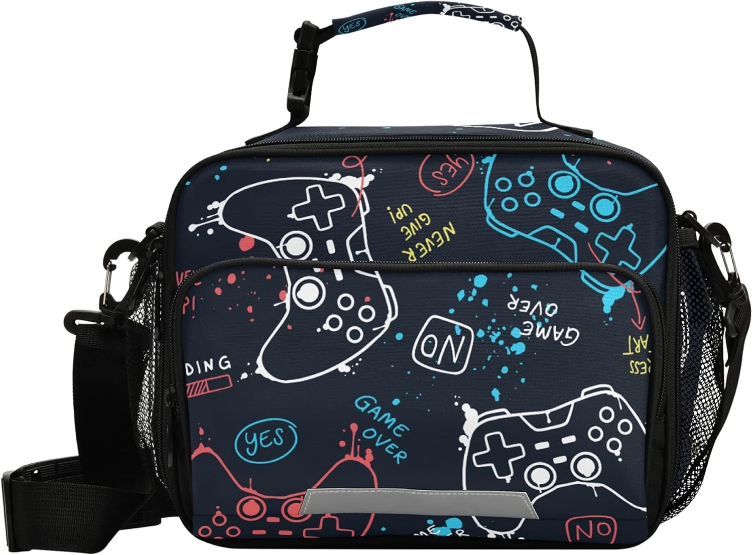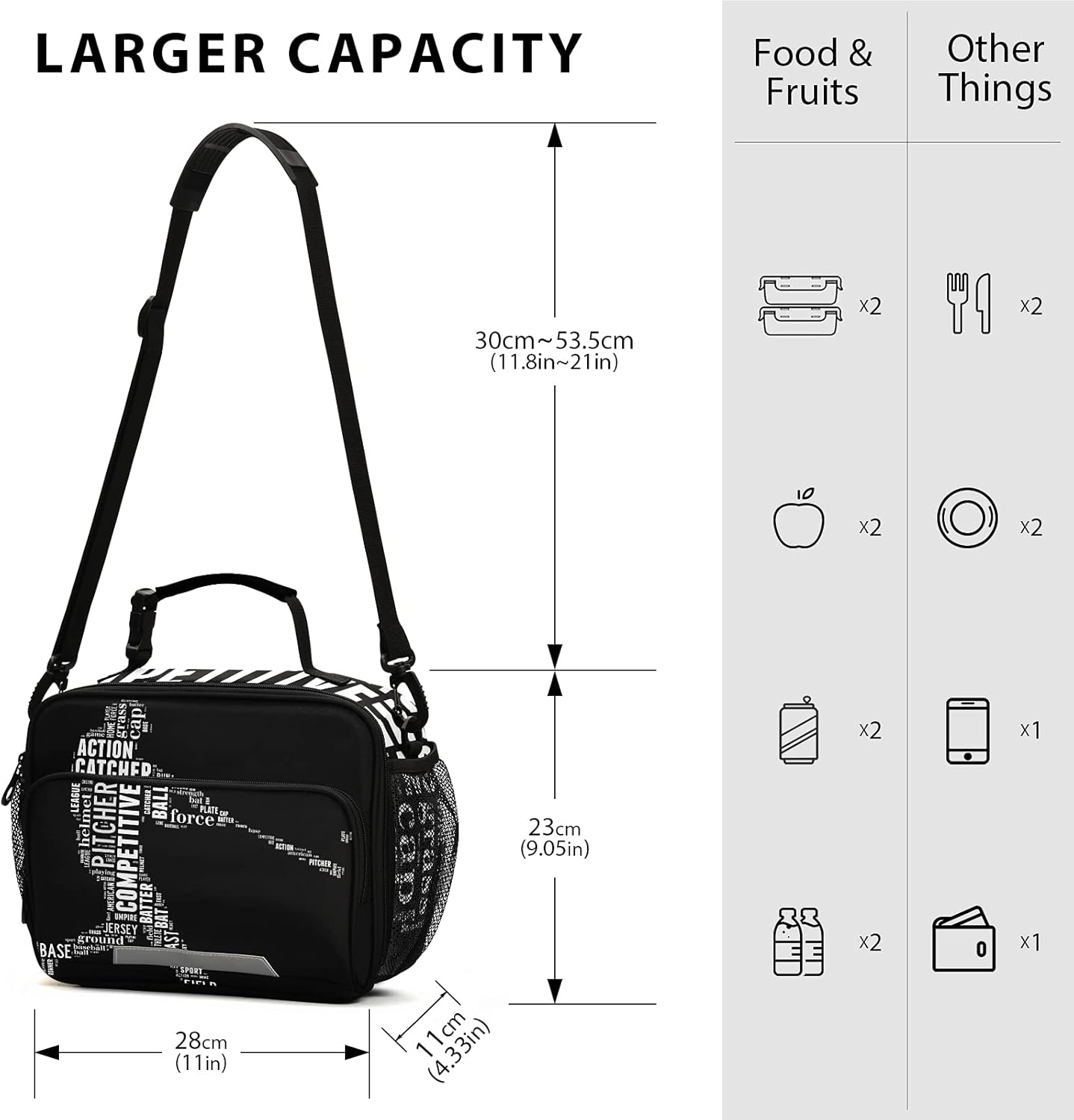 Glaphy Large Portable Lunch Cooler BagSize: 11*4.33*9.05in/28*11*23cmMaterial: 600D oxford cloth + high quality aluminum film + PEVAClosure type: zipperPrinting: vivid and personalized patterns, add some colors to your lifeOccasions: school, work, traveling, hiking, camping, trekking, cycling, gym, beach, outdoor activities Structure Design 1 x main zipper pocket, 1x inner mesh pocket, 1 x front pocket, 2 x side mesh pockets Main pocket-keeps your sandwich, salad, snacks, drinks and fruits warm, fresh or cold Inner mesh pocket-knives, forks, spoons and plates Front pocket-put tableware, napkins, keys, cards, facial tissues, purse/wallet, phone and other small items Side pockets-enough to fit water bottle and drinks Upgraded Handles The handle and strap are designed on the meal bag, which can be carried by hand or hung on the shoulder. The handle is equipped with a buckle to hang the meal bag on the backpack, which will free your hands. Easy to carry Multipurpose& Special Gift Ideal gift for child, friends, family members, lover or colleagues at school season, birthday and holiday Wash Suggestion Partially scrub, dry clean, please do not machine wash, because it will destroy the PEVA inside the lunch box and lose the insulation effect