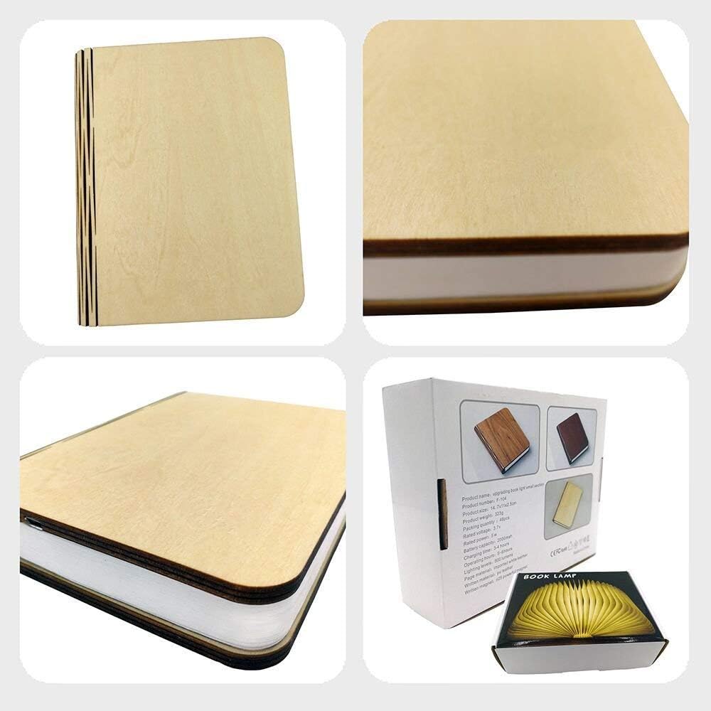 Size:14.7×11×2.5cmBook Shaped Light, Novelty Nightlight:Magicfly night light,it is a book-shaped lamp with creative ways to display. When you open the book, it turns on; when you close the book, it turns off. The soft LED light can make your living room, bedrooms and dining room feel welcoming and cozy.The LED lamp is convenient to carry, because it is powered by inside Li battery which can support the lamp for 8 hours. You can just put in your bag like a book, place it anywhere and don’t need to worry about bother of wire.Environmental Wooden:Made from environmental white maple wooden material, applied with lasing cutting technology to ensure that bending doesn't cause damage to lamp.Thermal Insulation : It will not hurt you when you touch the book, it is not hot for the light.Tear-Resistance : The paper of the Compact book light is not the normal paper like the book, it is tear-resistance, so you don't worry it will destroy easily!Specification:●Color: Warm white●Temperature: 2700-3000K●Operation Voltage: DC5V 300MA●Battery Voltage: 3.7V/2500mha●Charging Voltage: 5V/500mA●Battery: Build-in lithium-ion battery●Light Source: LED lights●Charge By: USB●Charging Time: 5 hours●Usage Time: 8 hours●Support: Foldable●Material: Environmental friendly waterproof material and wood●Certificate: CE, ROHS, FCC