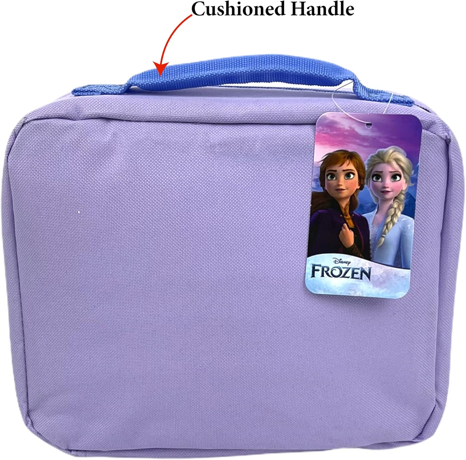 This cute Frozen 2 lunchbox features Princess Elsa and Princess Anna in their outfits and hairstyles from the Frozen 2 movie. Perfect for girls ages 3+ in preschool, Kindergarten and elementary school, it’s grab-and-go with the top handle and simple zip closure. Completely food safe, this roomy, flexible lunch box fits a full lunch and snacks, and will keep food and drinks fresh at school or on travel trips. Durable enough to last the whole school year, it’s great for back to school with a Frozen backpack and school supplies. Make going to school more fun with the comfort of her favorite characters!