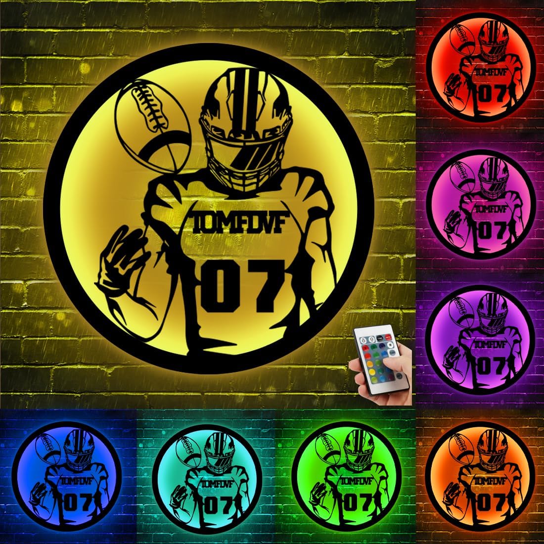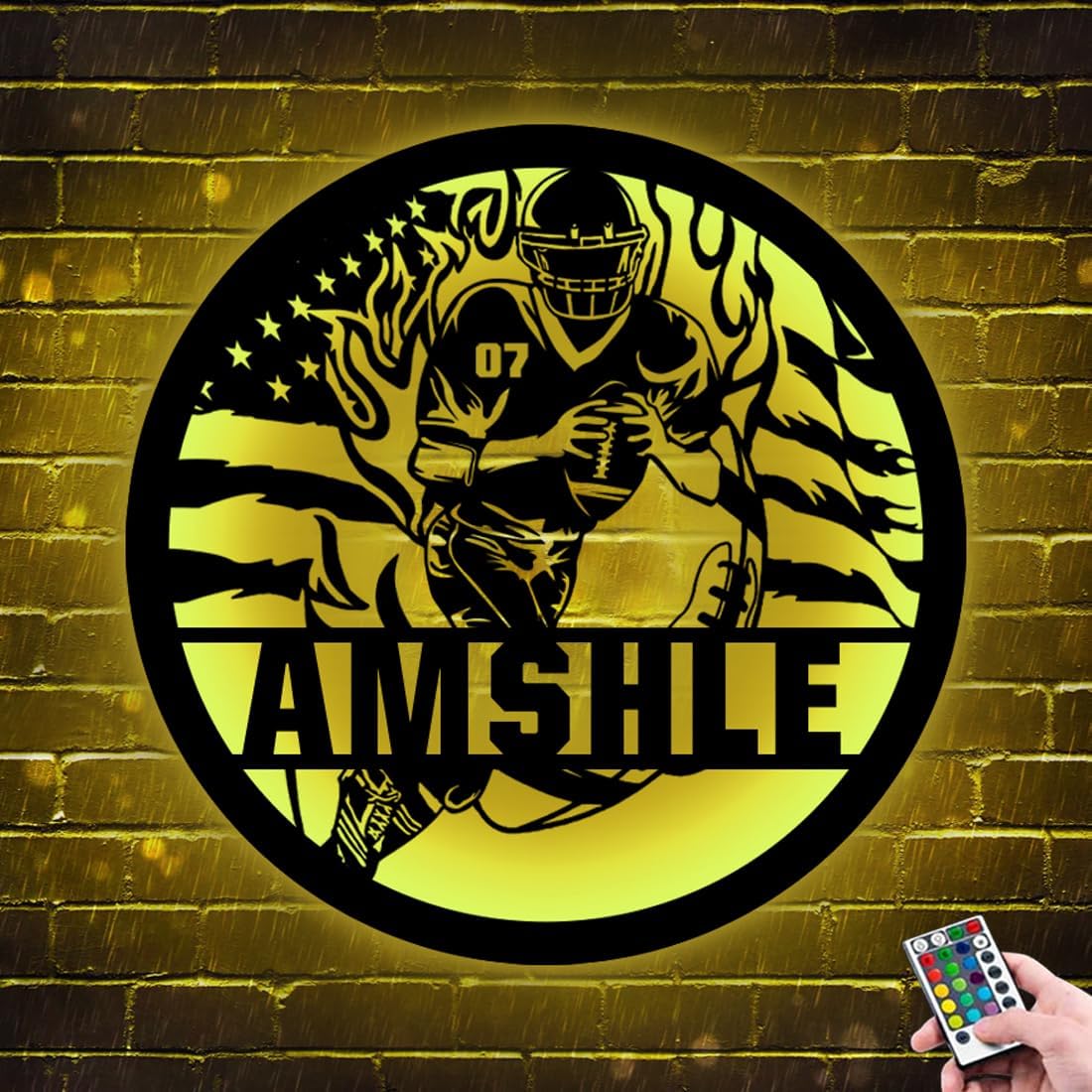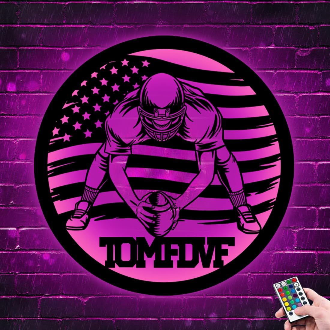Illuminate Your Space with Personalized Football Player Name Metal LED Neon Sign Light Features: Personalized Design: Customize your own Football player name on this metal LED neon sign for a unique and personalized touch. Vibrant Colors: With 16 colors to choose from, this LED neon sign can create a captivating and dynamic display in any room. Eye-catching Neon Lights: Experience the nostalgic charm of neon lights with the energy-efficient and long-lasting LED technology. Versatile Placement: Hang this neon sign on the wall of your bedroom, living room, or any space that needs a pop of personalized decor. This versatile LED neon sign can be easily mounted on any wall, whether it's your bedroom, living room, or even your man cave. Illuminate your space with the captivating glow of our Personalized Football player name metal LED neon sign light. Personalize it, hang it, and enjoy a truly unique and eye-catching piece of wall decor. set today and watch as students embrace their accomplishments and strive for excellence with enthusiasm and determination.