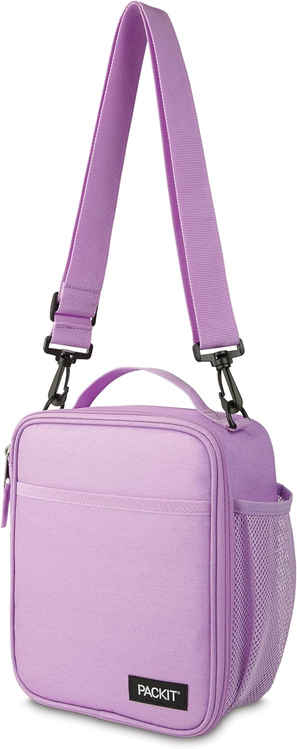 PackIt® Freezable Crossbody Lunch Box, Lavender, Built with ECOFREEZE® Technology, Fully Freezable, Collapsible, Reusable, With Top Handle, Front Slip Pocket. Effortlessly Carry, Fresh Every Time.