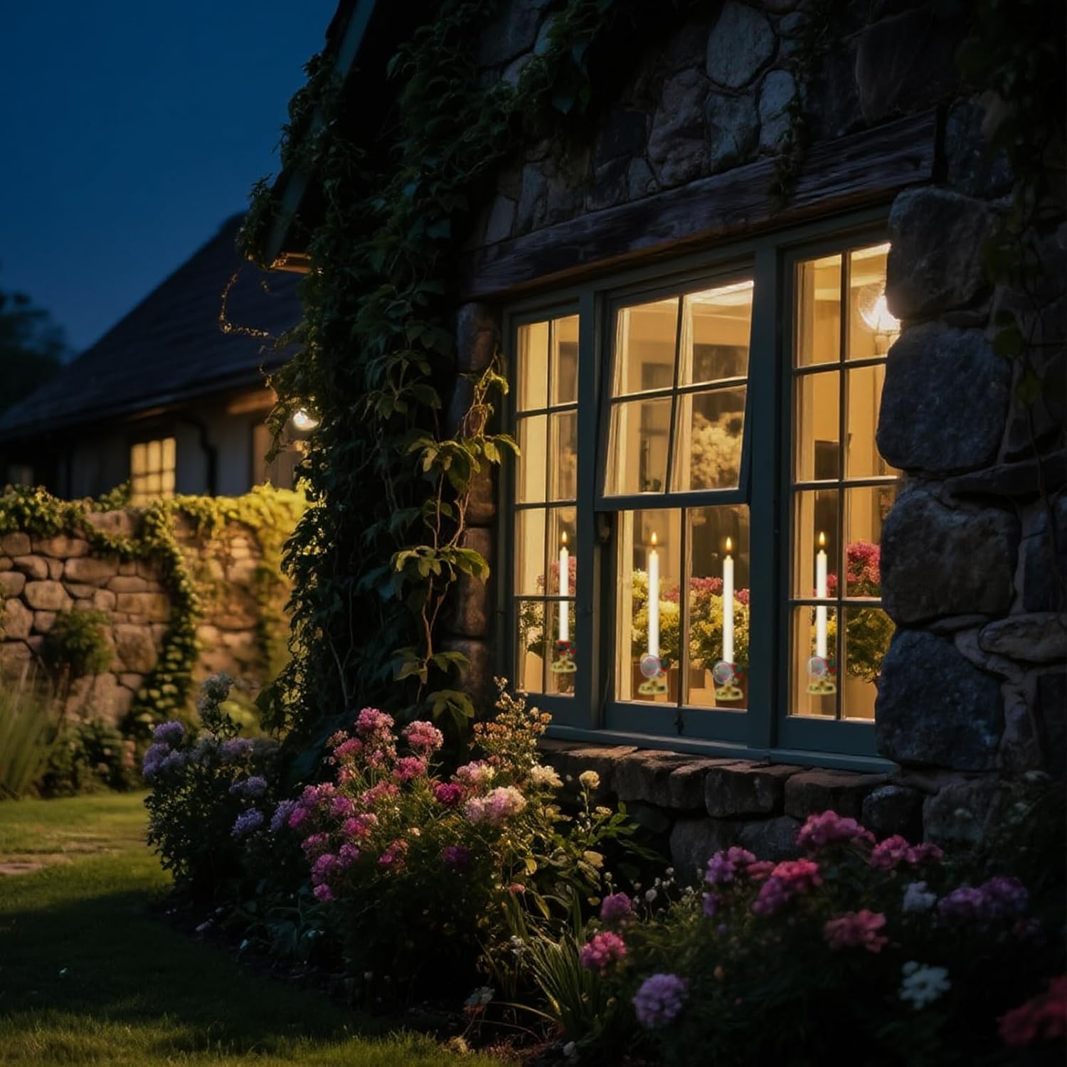 Wondise Flameless Window Candles with Remote Timer, Battery Operated Taper Candles with Wreath, 3D Wick Flickering for Christmas Decoration, Removable Suction Cups and Gold holders Included (6 Packs)