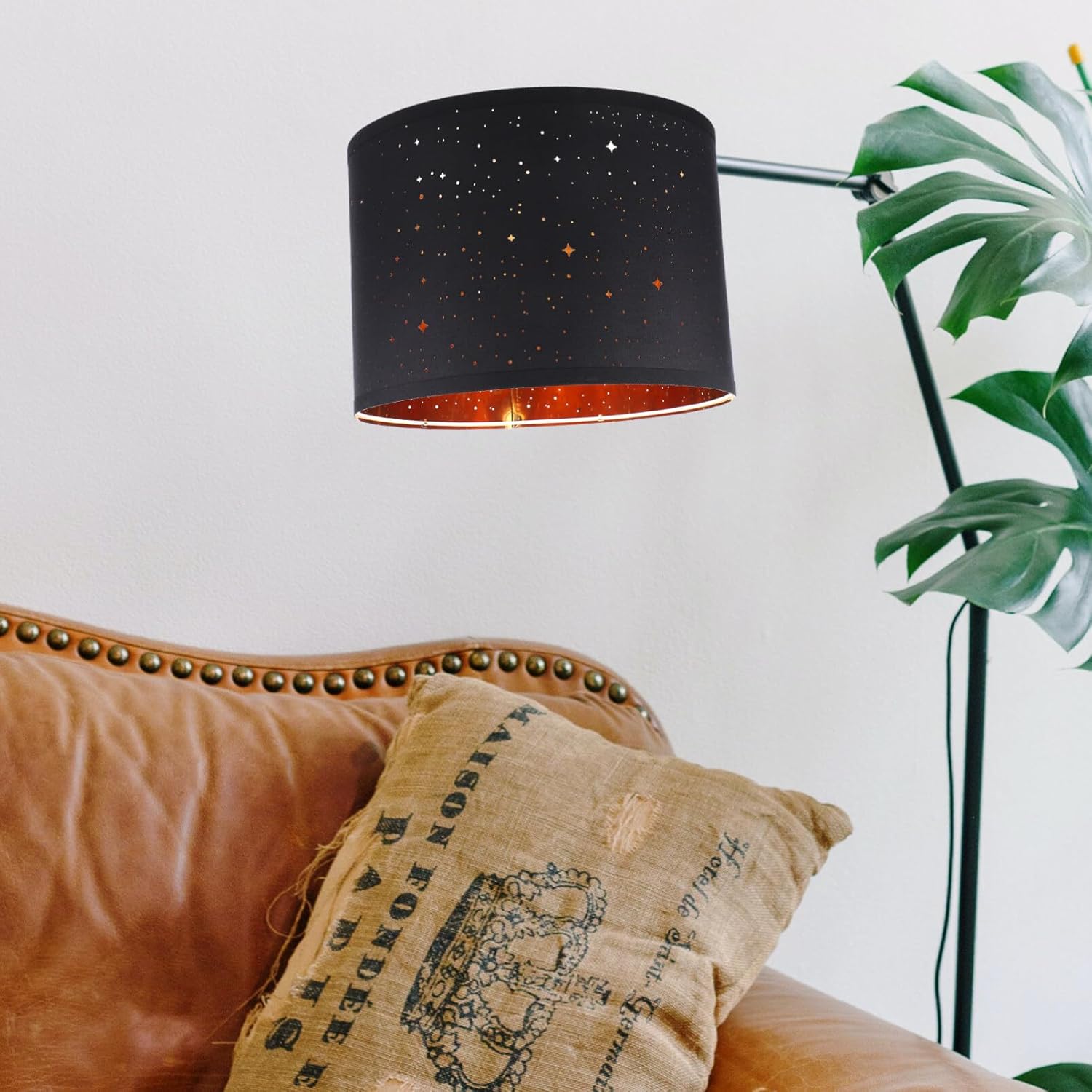 DescriptionFabric Shade Stars Pattern Clip- On Drum Table Cover Replacement Nightstand Lampshade for Chandelier Table Floor Wall Features-- Color: Black-- Material:Fabric, iron-- Size: 33.00X33.00X24.00cm/12.97X12.97X9.43in Package Including1 x lampshade