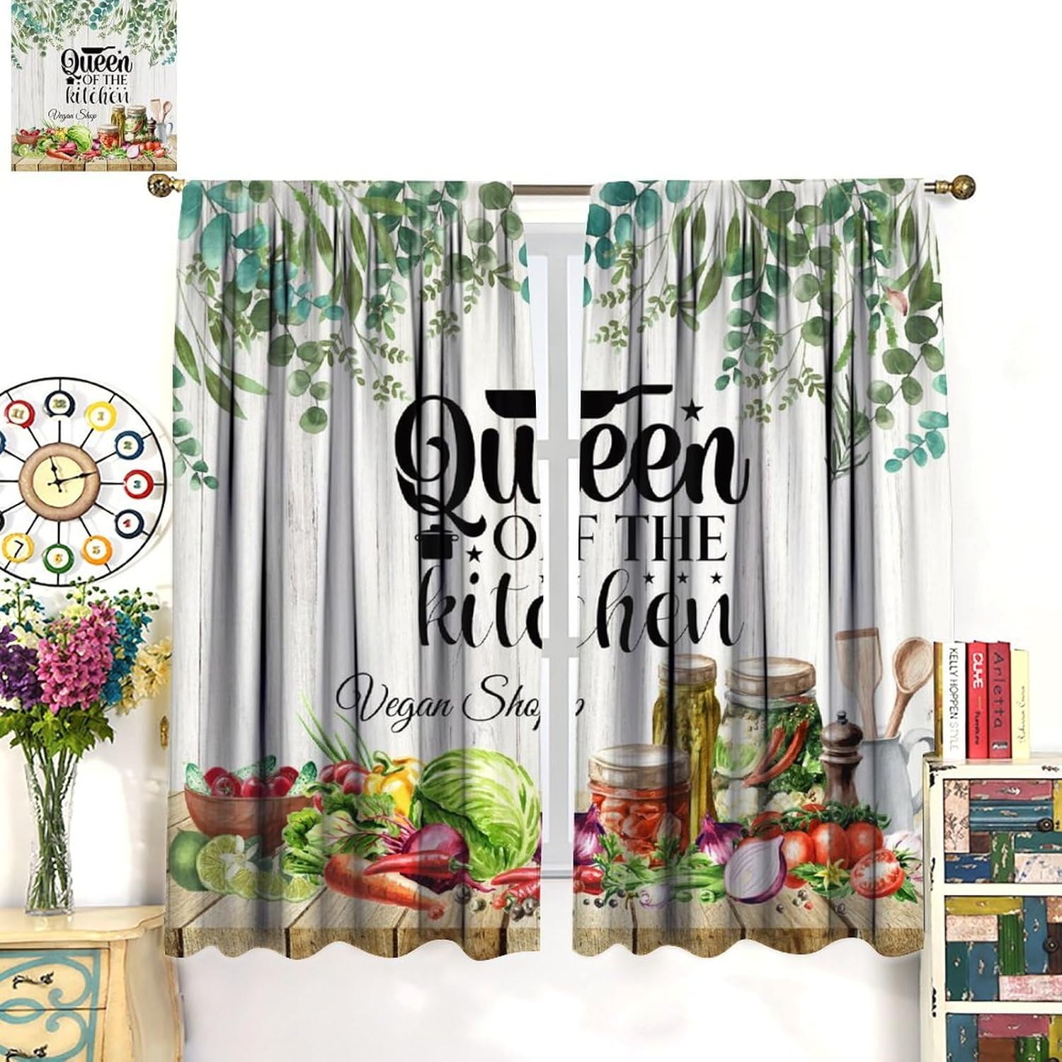 Home life new experience,rich theme print home kitchen products,add color to your kitchen and improve your quality of lifeAbout the function It can only filter 90% of the light and cannot completely block the light or darken the room,but it can protect privacy and generally has no special requirements and is very suitable for home use.The main function of curtains is decoration.It can beautify your room and enhance the environment.Bedroom,living room,kitchen,cafe,office,closet,door,bathroom,nursery,outdoor patio etc.About the productMaterial:99.99% polyesterPackage:2 panelsUse:Through the rod curtain,easy to hang installation.Size Description2 panels per package,each panel measures 21x45in(53.5x114cm),total size:42x45in(107x114cm)2 panels per package,each panel measures 21x54in(53.5x137cm),total size:42x54in(107x137cm)2 panels per package,each panel measures 21x63in(53.5x160cm),total size:42x63in(107x160cm)2 panels per package,each panel measures 27.5x63in(70x160cm),total size:55x63in(140x160cm)2 panels per package,each panel measures 31.5x63in(80x160cm),total size:63x63in(160x160cm)2 panels per package,each panel measures 31.5x72in(80x183cm),total size:63x72in(160x183cm)2 panels per package,each panel measures 36x63in(91.5x160cm),total size:72x63in(183x160cm)2 panels per package,each panel measures 42x84in(107x214cm),total size:84x84in(214x214cm)2 panels per package,each panel measures 26x84in(66x213cm),total size:52x84in(132x213cm)Your Reason For ChoosingCan block 85%-99% of light and UV rays.No chemical coating,healthier and safer for people,especially babies and kidsWarm TipsEasy to wash.Machine wash.Wish you happy shopping! Wish you a happy life!