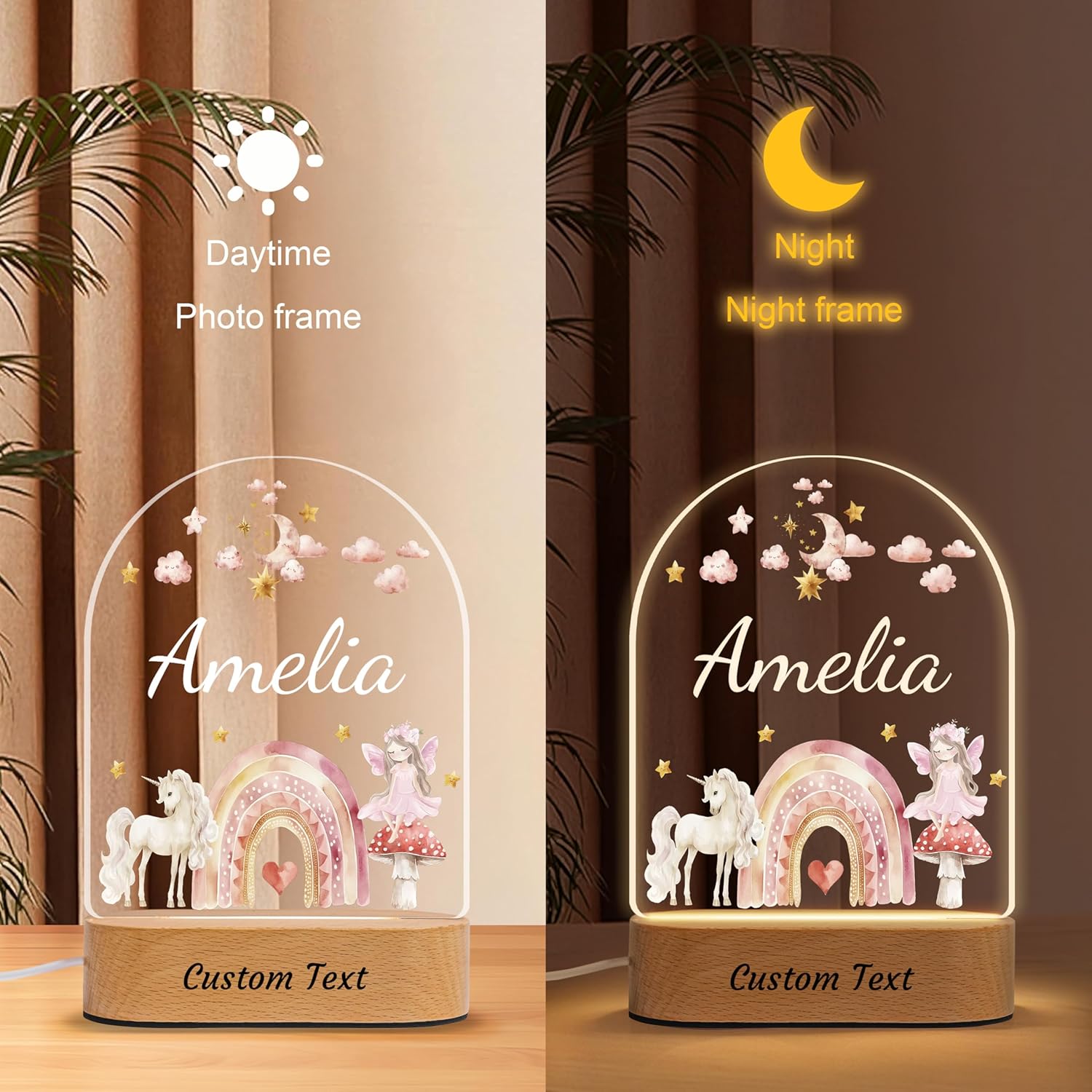 1. The Perfect Personalized Baby Gift: This custom baby night light serves as a meaningful and unforgettable present, perfect for celebrating a newborn's arrival. 2. Customizable Name Baby Gift: Personalize the night light by providing a name and date. 3. Made in the USA: Crafted with advanced UV printing technology on 6mm thick, high-clarity acrylic for a premium feel, this night light ensures vibrant colors and long-lasting durability. 4. Soft and Warm Glow: This children's night light offers white light, warm white, warm and seven RGB options.5. Personalized Gifts for Lovely Baby: Ideal for gifts.