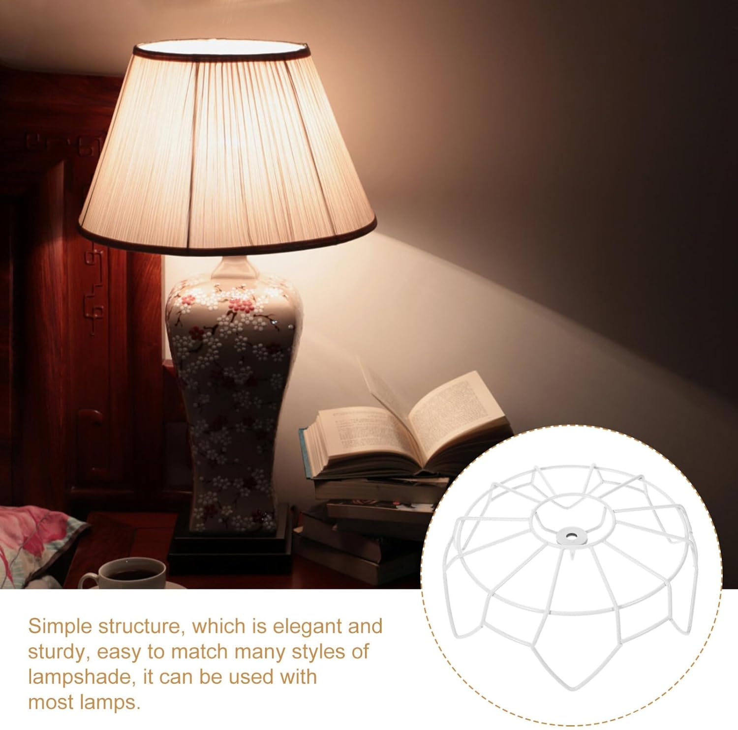 DescriptionIf you are in search of a practical and convenient DIY lampshade frame, or if you are looking for a sturdy, trustworthy lampshade frame that can bring you better using feeling, then you can not miss our product. Adopting reliable metal materials, our lampshade frame must meet your requirements. Features-Color:As Shown;-Material:Metal;-Size:25.70X25.70X9.00cm/10.10X10.10X3.54in;Package Including1 x Lampshade Frame