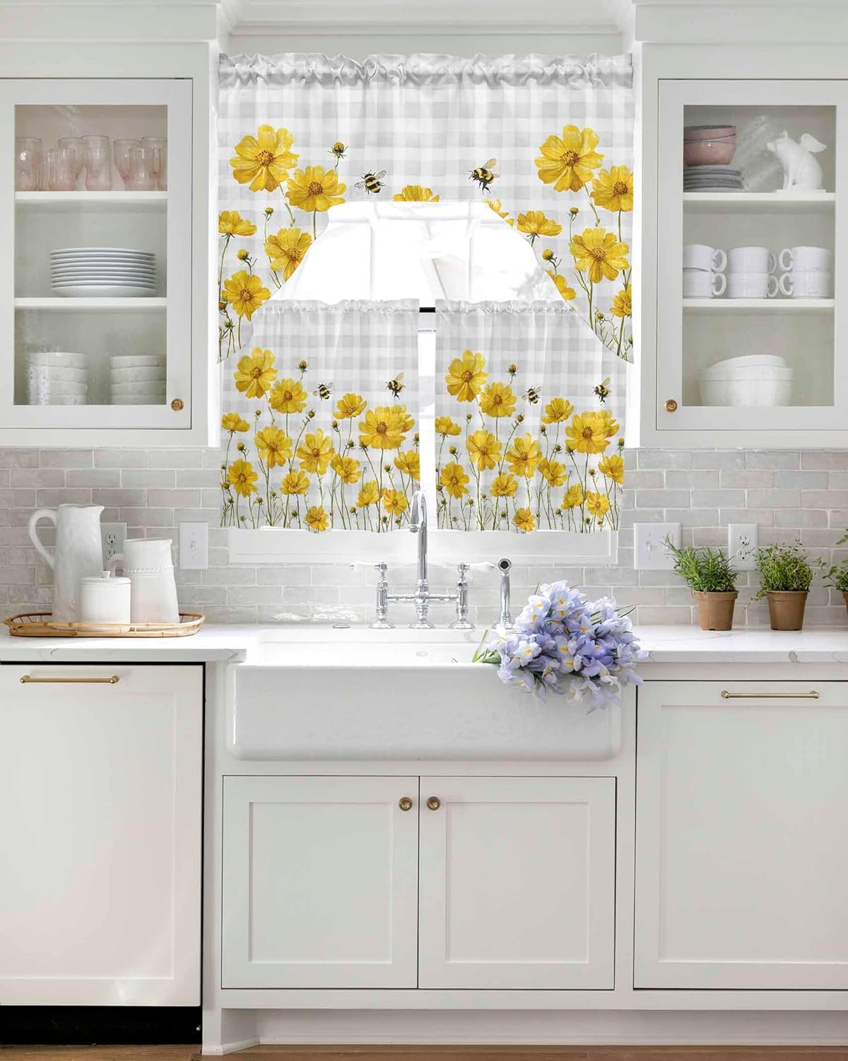 Are you looking for some special curtains to decorate your room?Are you confused what kind of gift can be given out for coming holidays?Why not spend some minutes to look our swag curtains set? economical and practical.3 pieces kitchen curtain set, special, aesthetic and chic patterns to brighten up your room decorations.Material:Made from high quality polyester, sturdier and more durable, fine workmanship, great stitches and neat hemmed, ensure to use for long time uses.3 sizes are available:Swag valance: 56'' x 36''; 56'' width valance and 18'' height flat, with 18'' scalloped swag, fit for window size of about 38"~54" wide.Swag and 24" tiers set: swag valance of about 56" wide x 36" long / 2pcs tiers of about 27.5" wide x 24" long each, fit for window size of about 38"~54" wide, 38"~50" length.Swag and 36" tiers set: swag valance of about 56" wide x 36" long / 2pcs tiers of about 27.5" wide x 36" long each, fit for window size of about 38''-54'' wide, 50''-62'' length.Rod pocket design:3 inches rod hole, suitable for most standard or extension rod diameter 2 inches at most. bathroom window curtains swag valance and tier set also can be hung by hook.Printing patterns:Do you beauty fatigue about the solid color kitchen curtains set? Here will you find many interesting and fashionable patterns swag curtains set. Modern/ rustic/ retro/ farmhouse/ landscape/ flowers/ geomteric/ spring summer floral/ Christmas snowman snowflake gnomes/ xmas tree/ funny cute pictures, having a new bright look.Care instruction:Machine wash in cold water on gentle cycle, do not bleach, tumble dry.