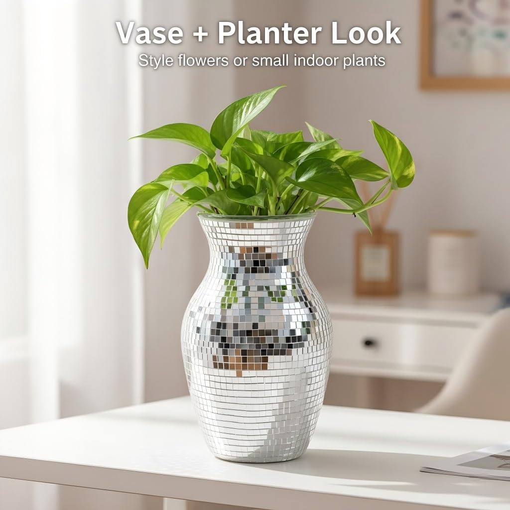 | Additional Features | disco ball decorations, disco ball flower vase, disco ball table decor, eclectic home decor, mosaic vase |