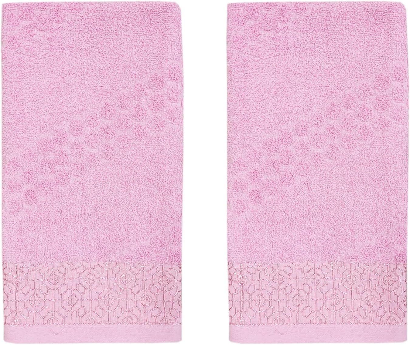 ABREEZE Towels Pack of 2 100% Cotton Lightweight Floral Towel 13 by 29 inch Highly Absorbent Quick Drying Embroidery Towels for Home Spa Hotel,Pink