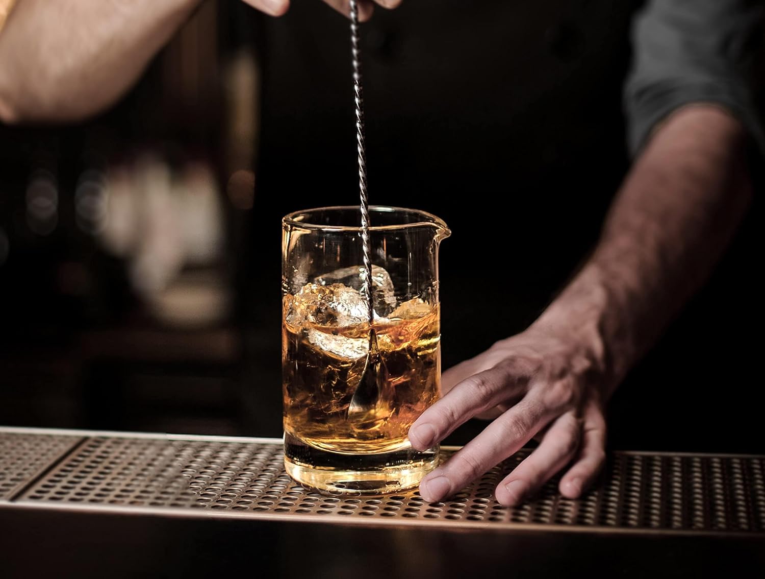 Hand Crafted - Handblown, hammered, and cut by skilled craftsmen. With a heavy, weighted 3/4" thick base, this ain't no dainty beaker. Seamless: Beautiful, bright, handblown glass art. Free of seamed lines that accompany machine-made glassware. Heavy bottom for stability while making stirred craft cocktails. Dishwasher safe - Made with high quality, ultra-clear lead-free glass that is conveniently cleaned in the dishwasher. Mixing glasses are an alternative to the cocktail shaker. The difference is dilution. A mixing glass better controls the dilution of your cocktails. What Cocktails should be stirred and not shaken? Traditional cocktails like the Old Fashioned, The Manhattan, Dry Martini, and the Negroni. Just to name a few. Industry-standard width and the enlarged pouring spout is compatible with nearly any hawthorne or julep cocktail strainer. 700ml / 24 oz capacity - Great for stirred doubles at a commercial busy bar or nightclub, but easily offering a single drink capacity for home bartending.