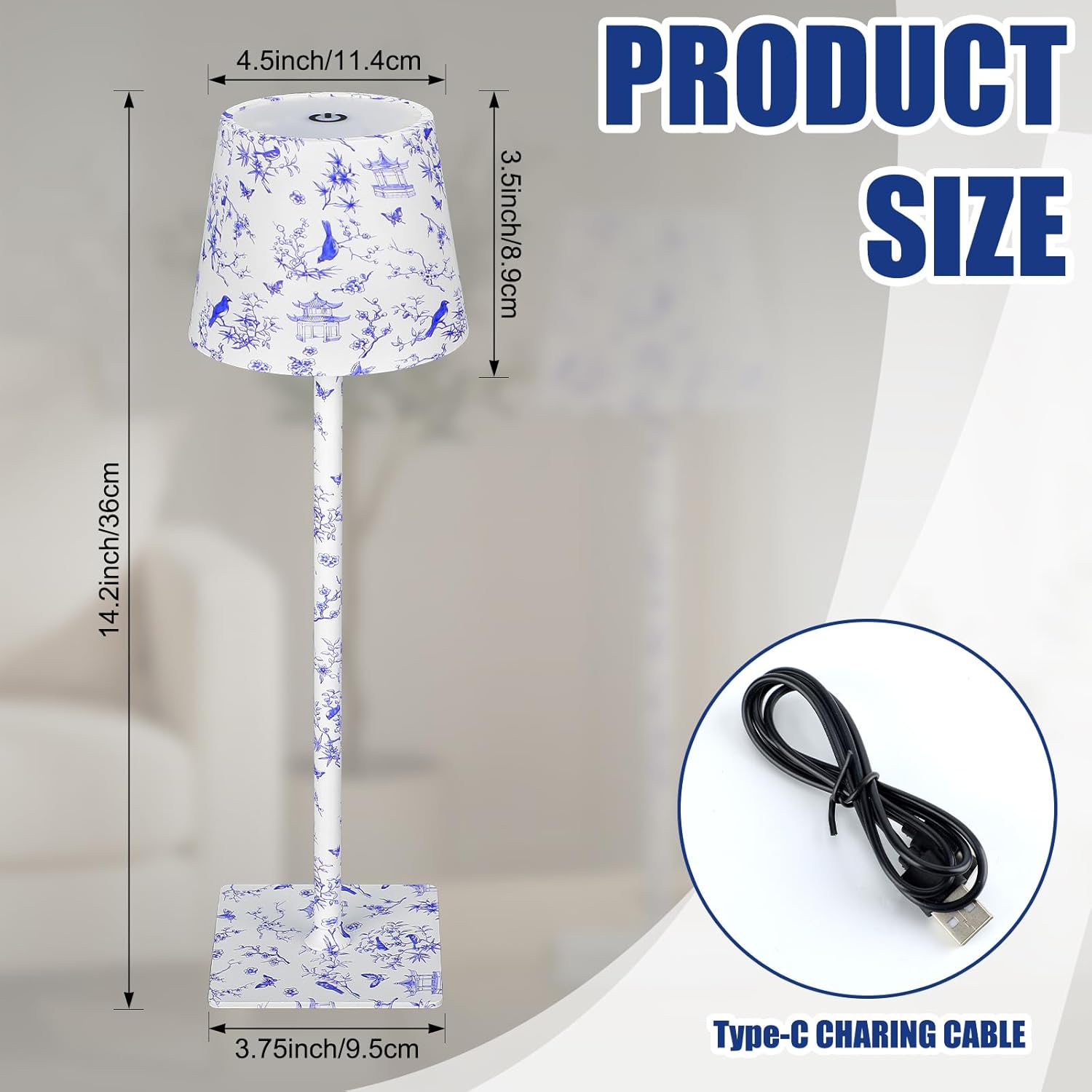 Features: Easy setup and user-friendly operation: Get started in moments with the simple assembly. The intuitive design allows for quick height adjustments without tools. Operating the lamp is straightforward, making it an addition to any room Soft & Illumination: The lamp utilizes an optimized acrylic shade that diffuses light evenly, reducing harsh glares and shadows. This creates a soft, comfortable glow suitable for extended reading, working, or creating a cozy ambient atmosphere in your room. Specifications: Material: plastic, metal Color: blue Size: about 14.2 x 4.5 inches Package includes: 1 x Portable desk lamp Notes: Manual measurement, please allow slight errors on size. The color may exist a slight difference due to different screen displays. The product received is the battery-operated version, including the battery and touch switch. The battery models are 18650, 1200mAh. Battery life depends on the selected brightness level and ranges from 4 to 40 hours