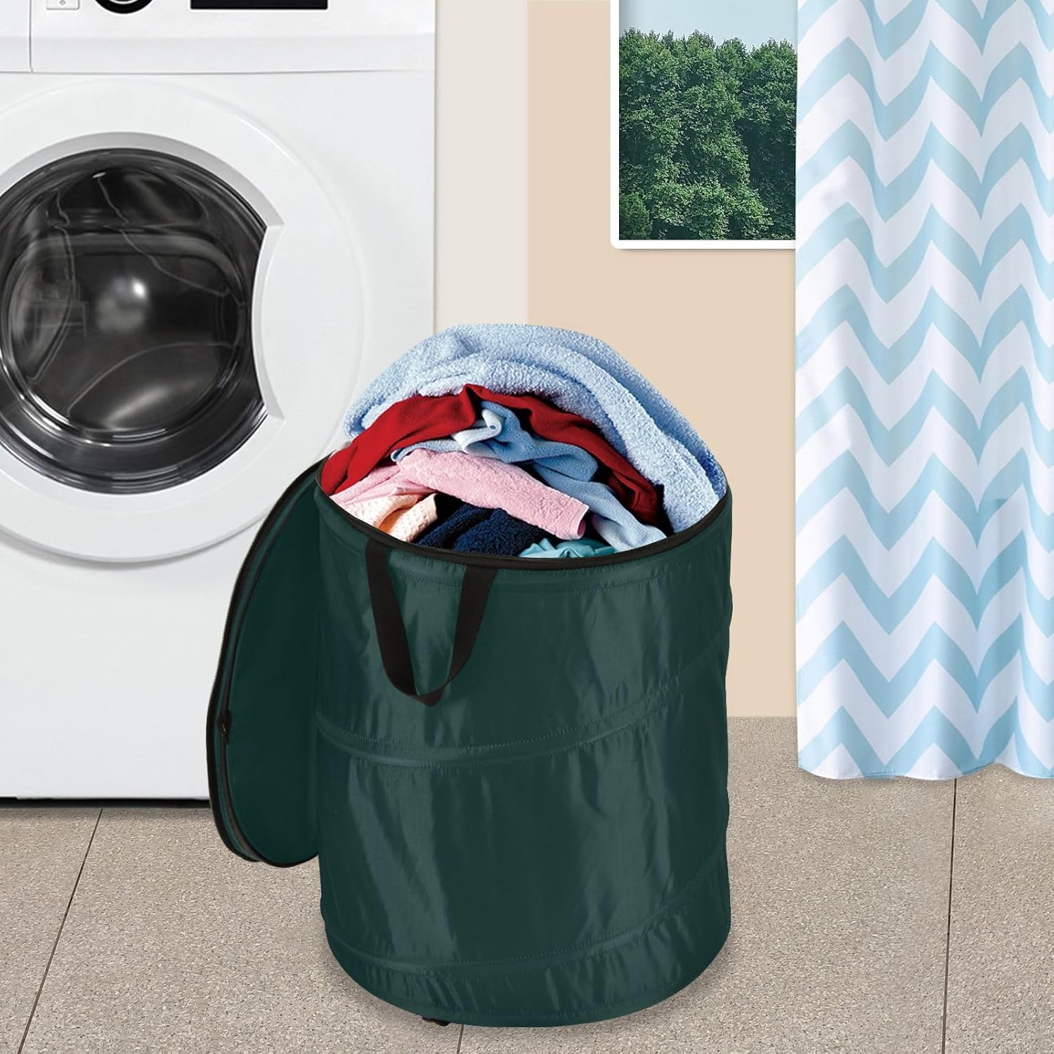 Collapsible Laundry Hamper with Zippered Lid, 50L - Durable Spring Structure, Dustproof, Space-Saving for Home and Outdoor Use.Material Quality:Our laundry hamper is crafted with a resilient 210D polyester lining, known for its strength and longevity. The material ensures that your hamper not only holds up well under daily use but also withstands the test of time.Dimensions:With a generous size of 40x40x47 cm (15.7x15.7x18.5 inches), this Slim Hampers for Laundry boasts a capacity of approximately 50 liters, offering ample space for your laundry needs without taking up too much room.Robust Construction:Featuring a sturdy spring-like structure, our hamper maintains its upright shape while being incredibly easy to collapse and store away when not in use. This design ensures that your laundry hamper is always ready for duty and can be packed away in seconds.Secure and Dustproof:A full-zippered lid covers your laundry completely, sealing out dust and providing a neat and tidy appearance. The lid is easy to open and close, ensuring that your laundry stays clean and discreetly out of sight.Lightweight and Portable:We understand that laundry day can mean moving loads from one place to another. That's why our hamper is designed to be lightweight and easy to carry, making it a breeze to transport your laundry wherever you need to go.Ideal for Various Settings:Whether you're in a laundry room, bedroom, camping site, or needing a place to store toys, our laundry hamper is a perfect choice. It's also great for keeping things tidy in your lawn or garden area. The versatility of this hamper makes it a must-have in any setting.Care Instructions:We recommend wiping it clean with a damp cloth to keep it looking its best. Elevate your home organization with our Collapsible Laundry Hamper and say goodbye to messy rooms and outdoor spaces.