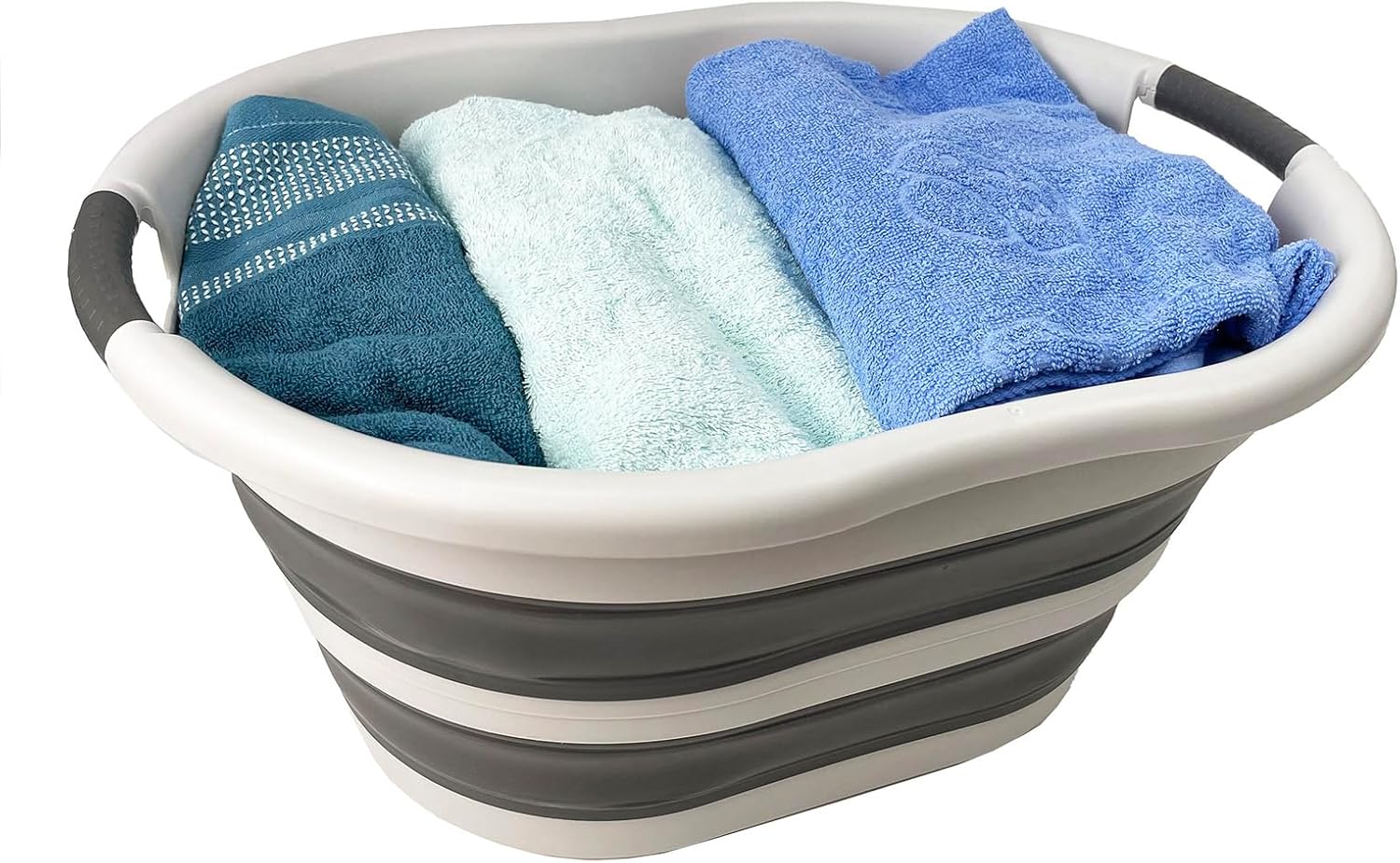 **Collapsible TPE/PP Oval Tub **Brand: SAMMART **Material: TPE & PP **Expanded size: 22 x 17.3 x 11 inches **Collapsed size: 22 x 17.3 x 3.1 inches