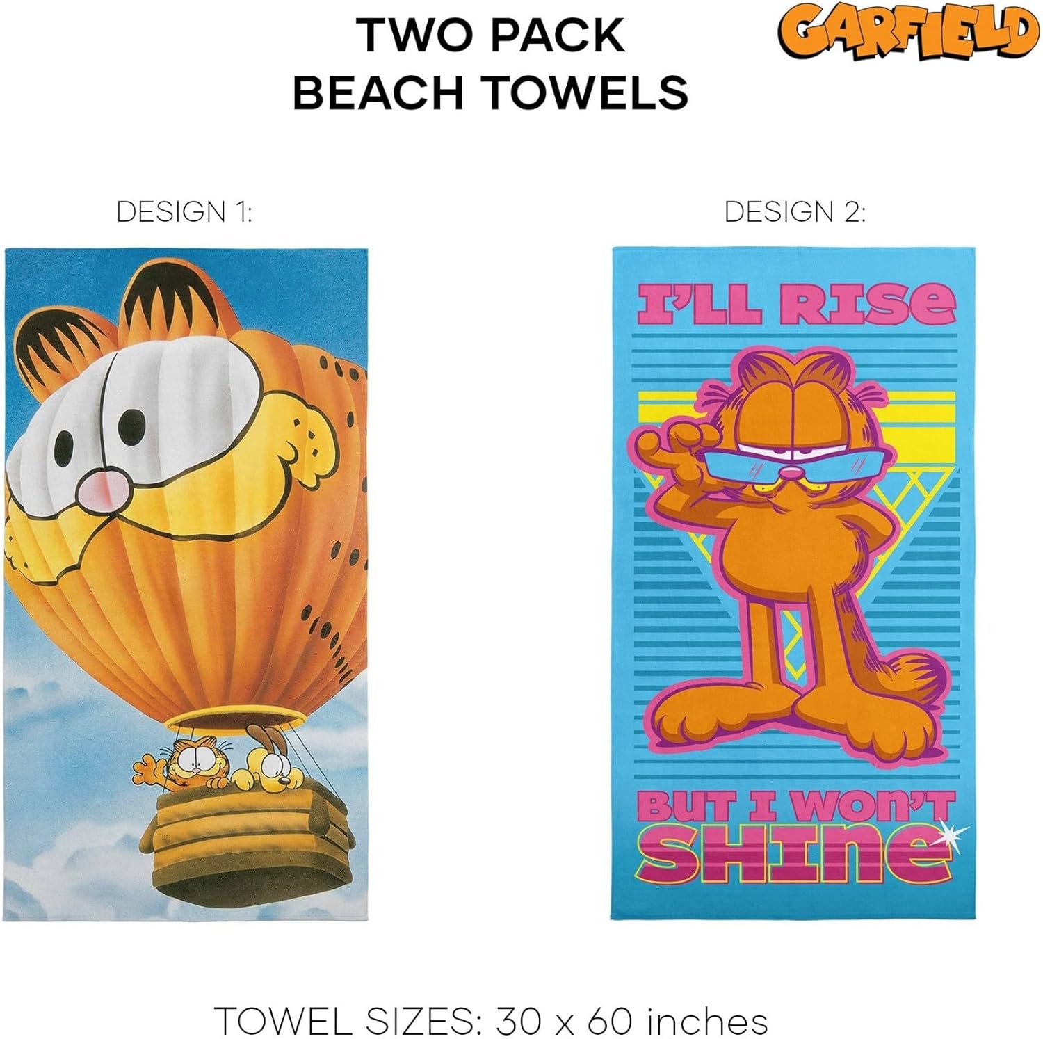 Elevate your beach and pool days with Nickelodeon's Garfield "Balloon Buds" + "Love Weekends" Beach Towel 2 Pack Set. These practical yet whimsical towels, featuring everyone's favorite lazy cat, Garfield, are a must-have for fans of all ages. Designed for both longevity and comfort, these towels are perfect for lounging by the pool or soaking up the sun at the beach. Capture Garfield's laid-back spirit and infuse your summer outings with a touch of fun using this delightful towel set.