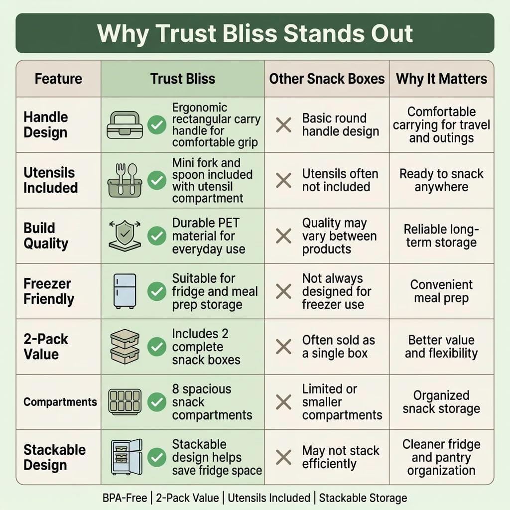 | Included Components | 16 Removable Compartments (8 per box), 2 Snackle Boxes Containers, 4 Mini Forks, 4 Mini spoons, Built-in Utensil Trays |