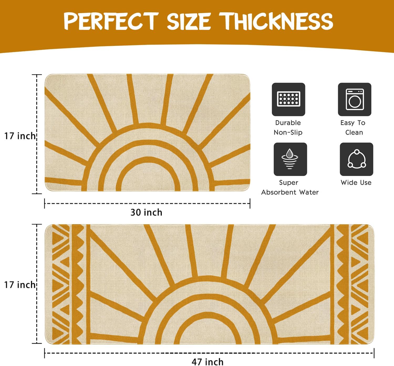 This kitchen rugs is perfect to be used as a shoe cabinet side mat or bed side rug.Simple and fashion design, ideal for brightening your kitchen.The kitchen mat with the cute pattern design goes well with your home decor ,Set this mats set at your kitchen and sink to add a warm and inviting feel to your home sweet home. It's really a great and simple mat for your kitchen use also very suitable for use kitchen sink floor, laundry room, bathroom vanity, restaurant kitchen. Our kitchen rugs set 2 piece were designed to last! The non-slip rubber points backing will help keep the mat in place and make sure it doesn't slide around. The upgrading technology adopted makes the water absorbent polyester fiber solid and practical, not easy to fall off. Eco-friendly, nontoxic, odorless, perfect for homes with pets or kids. There are various ways to clean the durable farmhouse kitchen sink rugs. You can shake off the debris from the kitchen rugs, sweep with a broom, or use a vacuum for a deep clean, also can be washed and dried with the machine.