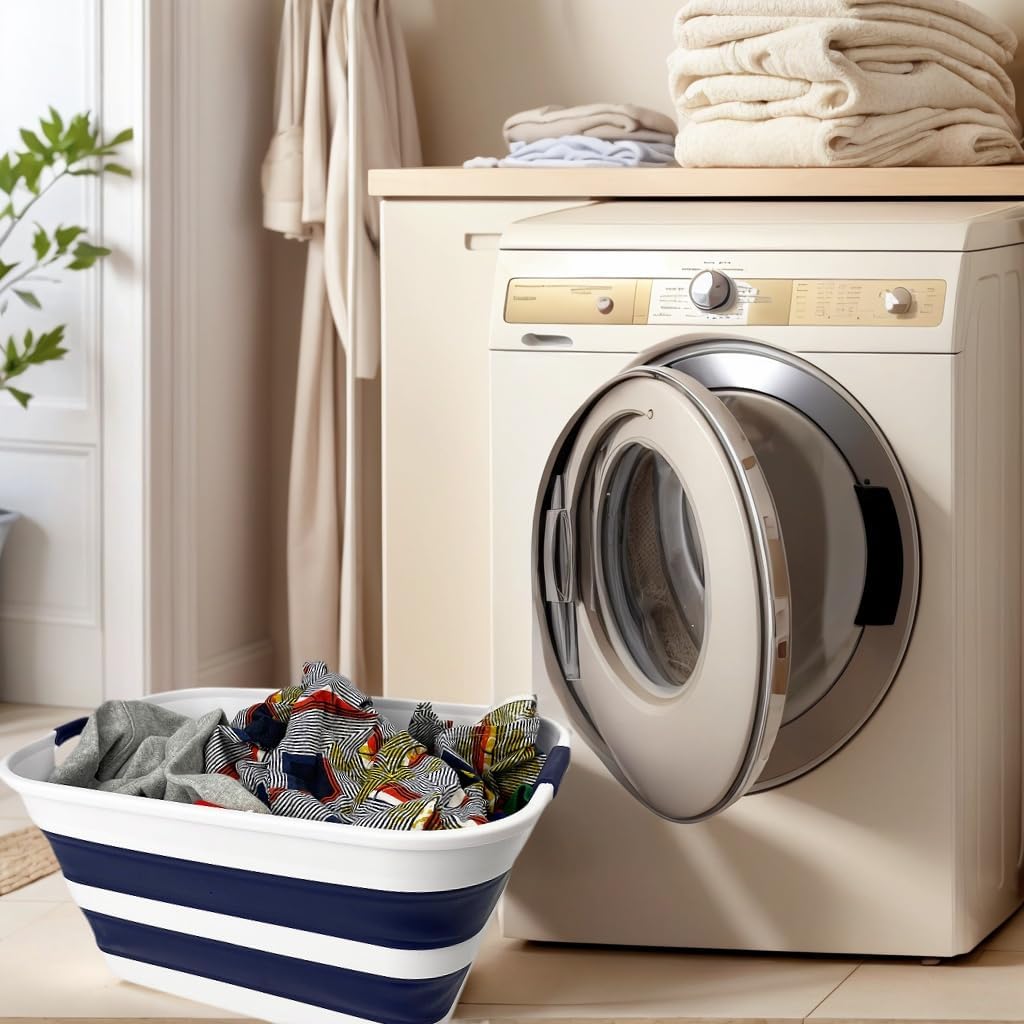 **Collapsible TPE/PP Laundry Basket **Brand: SAMMART **Material: TPE & PP **Expanded size: 19.6 x 15 x 9.7 (h) inches **Collapsed size: 19.6 x 15 x 2.2 (h) inches