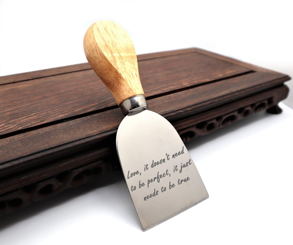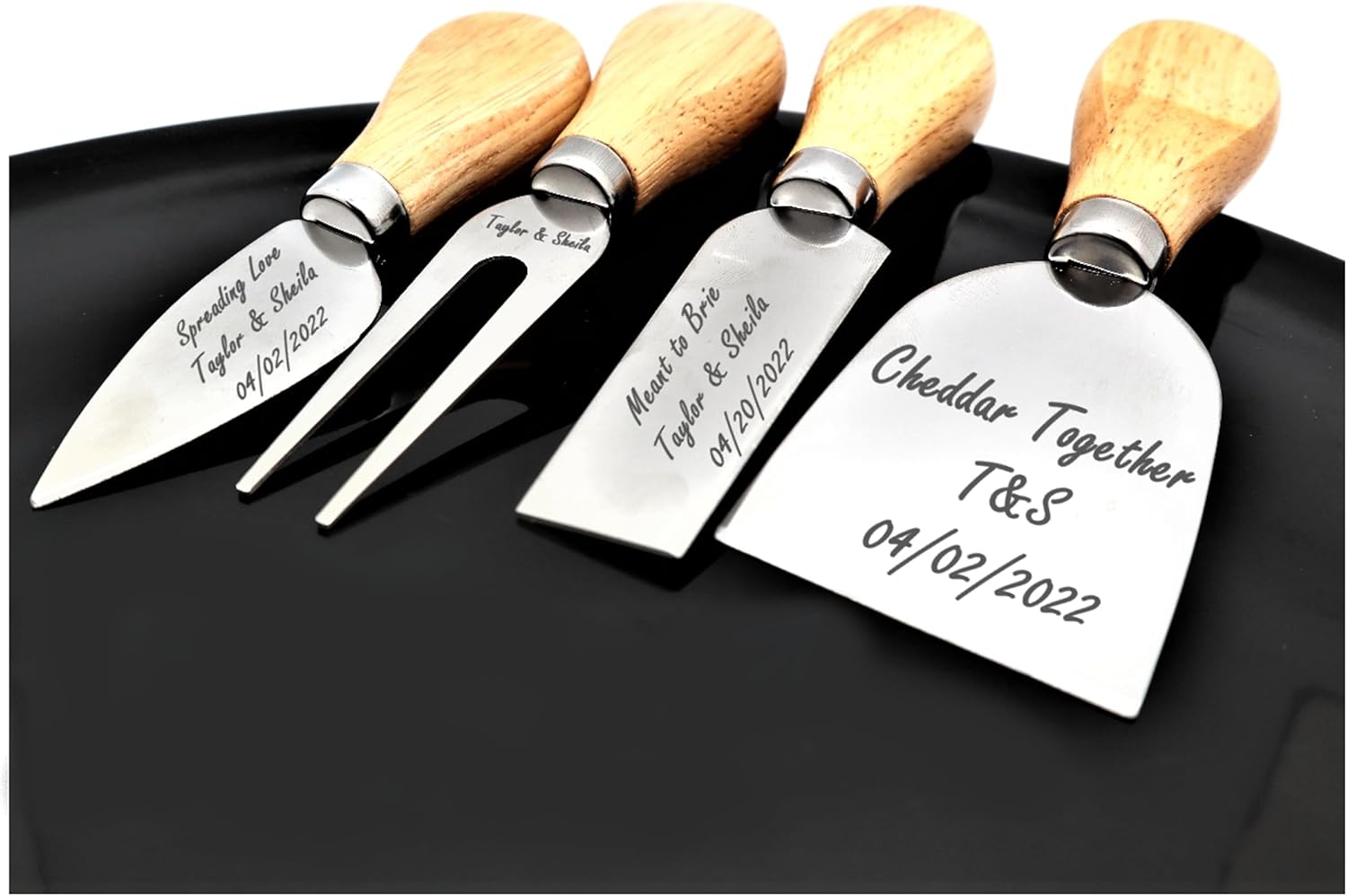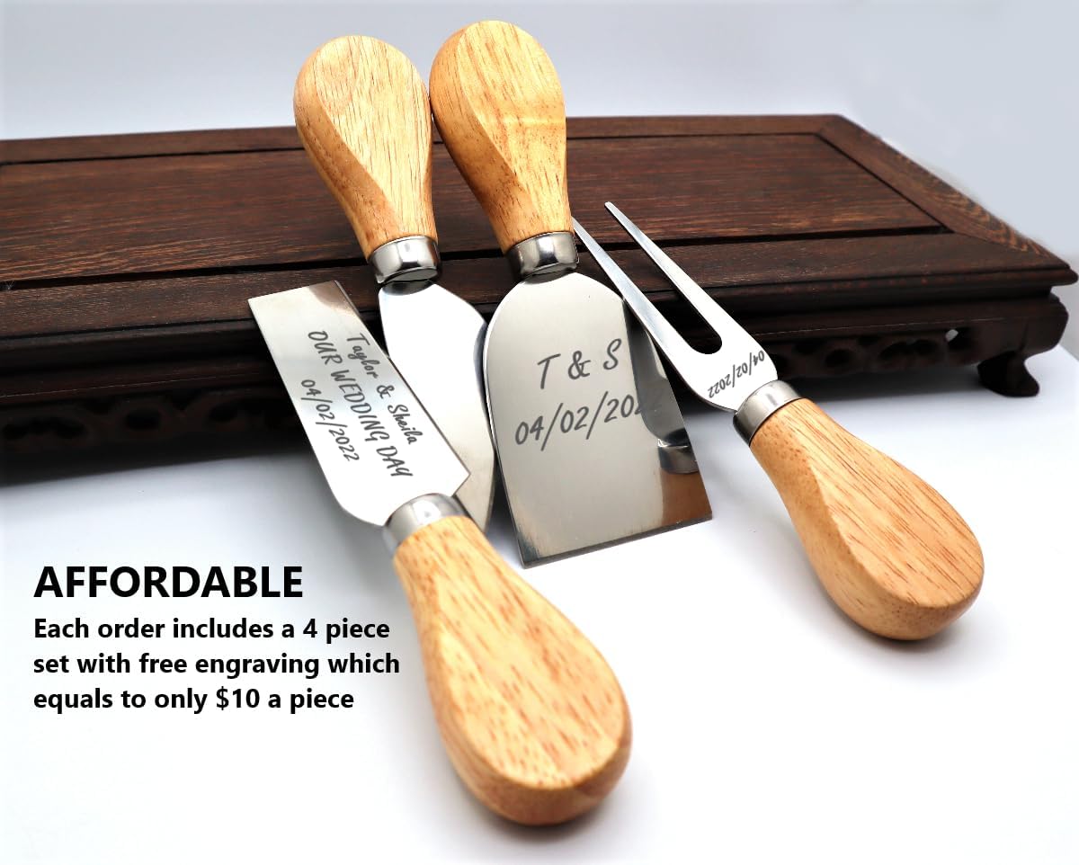 ๐ Looking for a sophisticated and personalized way to serve your favorite cheeses? Look no further than our personalized cheese knife set! โ Our personalized cheese knife set can be engraved with any message, name, or design, making it the perfect way to showcase your individuality and personal style. It's also a great way to commemorate a special occasion or make a unique and thoughtful gift for a friend or loved one. โ Crafted from high-quality materials and designed to impress even the most discerning cheese connoisseur, our cheese knife set is the perfect way to showcase your individuality and personal style while entertaining guests or enjoying a quiet evening at home. Whether you're a cheese lover or looking for a unique and thoughtful gift for a friend or loved one, our cheese knife set is sure to impress. ๐ฝ๏ธ With a variety of knives designed to handle any type of cheese, our cheese knife set is designed to make entertaining easy and sophisticated. From soft brie to hard cheddar, our knives are designed to make quick work of even the toughest cheeses. And with a sleek and stylish design, our cheese knife set is sure to be a conversation starter at your next gathering. โ They are perfect for cutting and serving cheese, cake, dessert, salad, suitable for home, charcuterie and bakery. Cut any type of cheese: hard, firm, semisoft, crumbly. They'll be a new crowd favorite for any party.