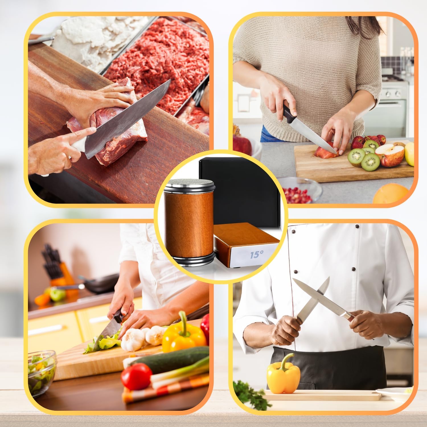 Keep your knives razor-sharp effortlessly with the Rolling Knife Sharpener Kit, designed for precision and ease of use. Featuring an innovative rolling design and a multi-angle magnetic base, this sharpener offers 15° and 20° sharpening angles to suit a variety of cutting tasks, from ultra-fine slicing to heavy-duty chopping. The magnetic base ensures consistent angles, while the dual-sided diamond and ceramic rolling discs deliver exceptional sharpening and polishing for knives of any steel hardness. Simply secure your knife, select the desired angle, and roll the sharpener back and forth, finishing with a polishing roll for a smooth edge. Perfect for kitchen, outdoor, or collector knives, this sharpener is both functional and elegant, making it an ideal gift for chefs and culinary enthusiasts. Packaged in premium materials, it’s a must-have tool for maintaining sharp, durable blades ready for any culinary challenge.