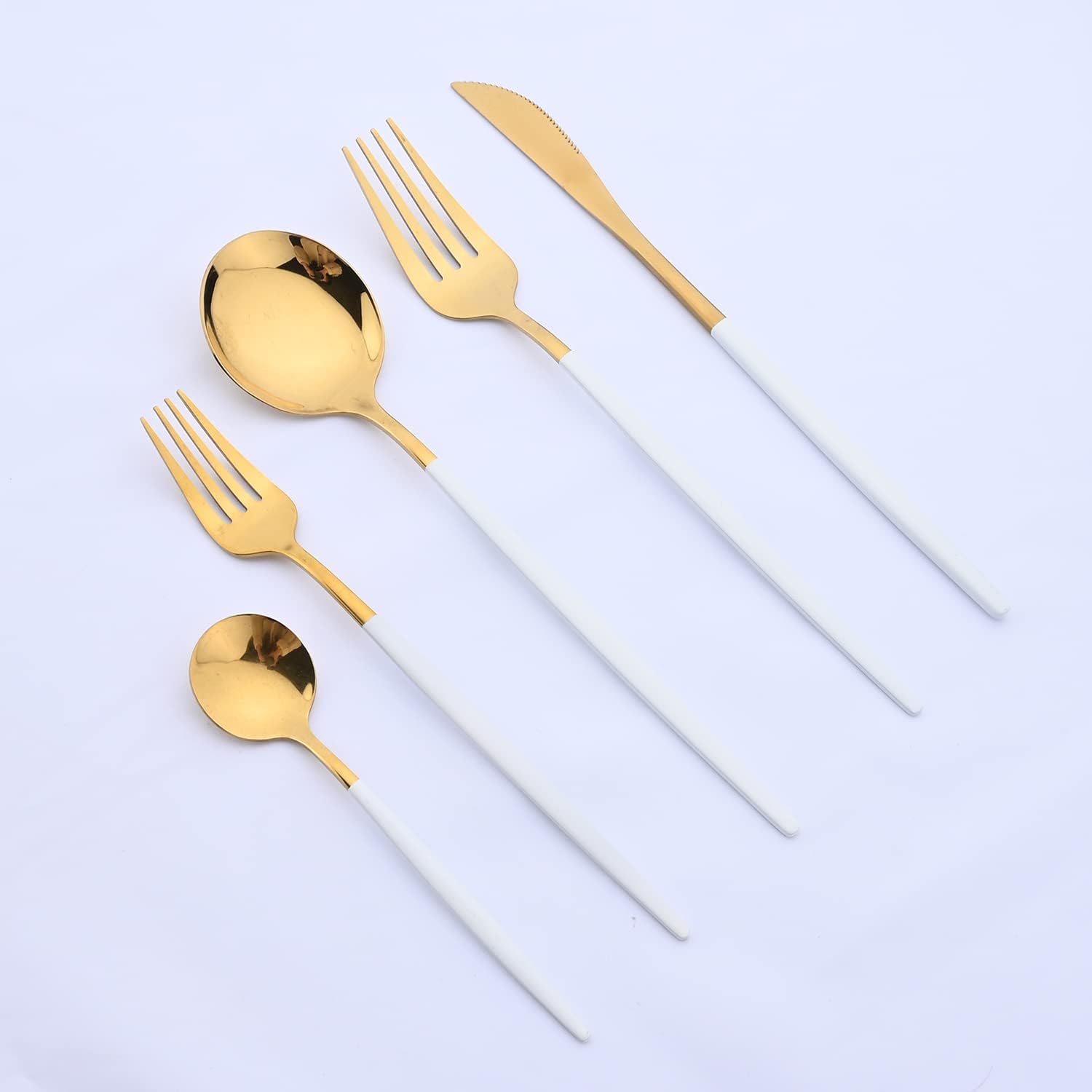 Feature: Use high-quality food-grade stainless steel, durable, can be used daily, long service life, bending resistance. Mirror polished, shiny appearance, make your dining table layout elegant and unique. Smooth edges, no rough marks, slip resistant, beautiful, comfortable to hold. Very suitable for daily use, parties, parties, casual or formal occasions. Easy and convenient to clean by hand, and dishwasher safe, will not fall or scratch. Included content: 4 xDinner Fork 4 xDinner Spoon 4 xDinner Knife 4 xTeaspoon 4 xDessert Fork
