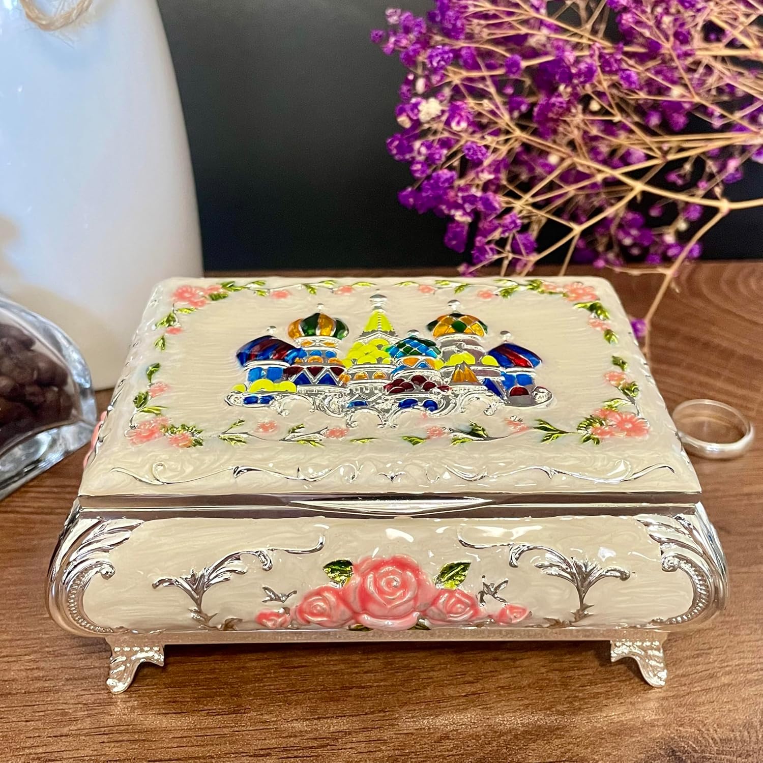 Scenario Great Gift for Birthday,Mother's Day,Christmases,Children's Day, New Year's Day, Halloween, Collectors, Wedding, Anniversaries,etc. Size and Weight Small:L*W*H(9.7*7.2*4.8cm /3.8*2.8*1.9"),174g/6.2oz. Medium:L*W*H (13*9.6*6cm /5.1*3.8*2.3"),332g/11.7oz. Large:L*W*H(18.3*13.8*8.8cm /7.2*5.4*3.5"),790g/28oz/1.7lb. Package Contains 1 pcs metal jewelry chest. (Not including decorations such as Gems,Ring, Bracelet.) Maintenance Methods 1. Please clean the jewelry box with a soft dry cloth. 2. No need to wash the fluff inside. Note Measured by hand, and the boundary of the measurement is different, the size may vary slightly. There may also be a small difference in the weight of each box. Due to differences in light and screen, product color may be slightly different from the picture.