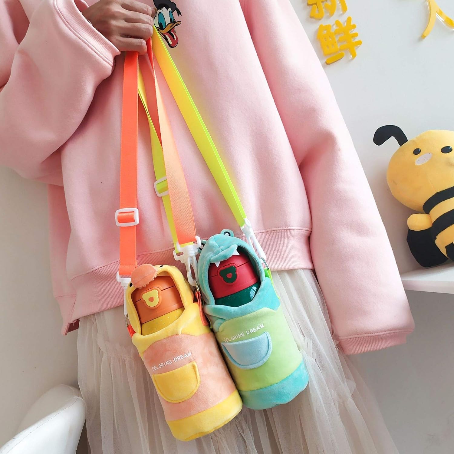 Yellow Duck Water Bottle With Holder Strap 2 Lid Cute Cartoon Stainless Steel Hot Drinkings Double Wall Vacuum Cup Birthday Gifts Each water bottle is made of high quality 316L stainless steel. It will never leave a metal taste or rust, avoid the taste of the liquids to change; use high quality materials for our insulated water bottles and accessories.