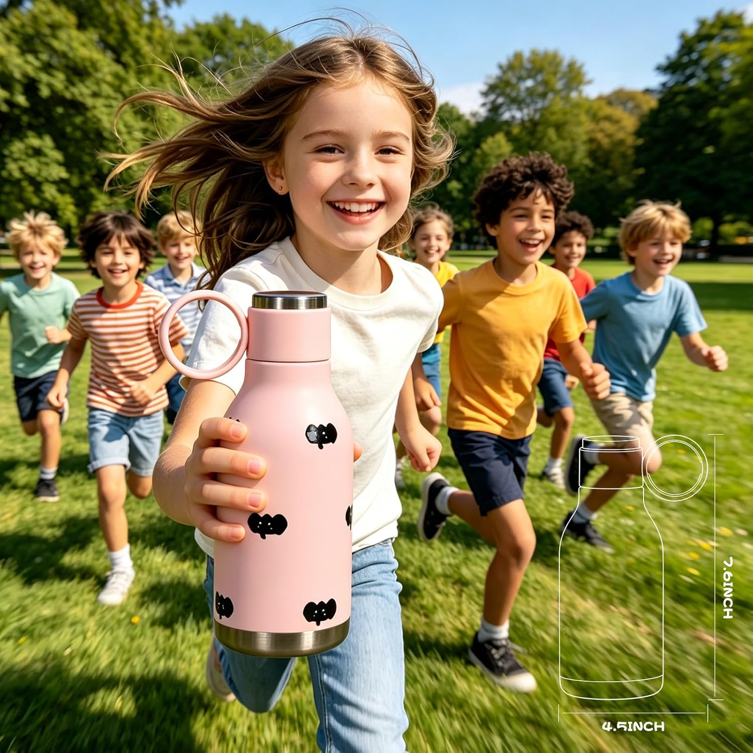 INSULATED BOTTLE - Our insulated stainless steel water bottle designed for kids, keeps liquids hot for 12 hours and cold for 24 hours. Our insulated water bottle using 18/8 (304) stainless steel, free of BPA, lead, PAES.