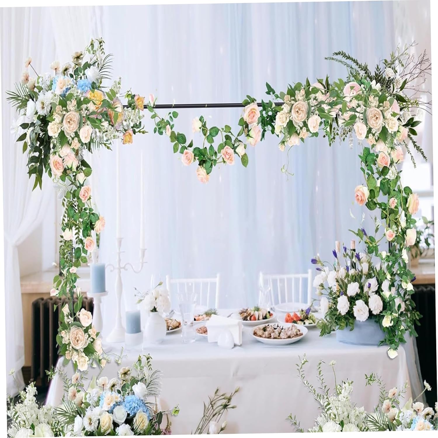 Description: Create stunning elevated decorations with our Over Table Display Bar with Clamps, an adjustable iron arch stand that serves as the perfect foundations for transforming ordinary tables into extraordinary party focal points. This professionally-designed arch system features iron construction with an attractive black finish that provides both strength and visual subtlety, ensuring your decorations take center stage while the support framework remains discreetly in the background. The innovative clamping mechanism attaches securely to most table edges without tools or permanent modifications, making setup and removal straightforward processes that even first-time users can accomplish confidently. This versatile over the table rod stand serves as an ideal support structure for balloon arches, floral garlands, fabric swags, lighting elements, and various other decorative treatments that benefits from elevated presentation. The arch shape creates a beautiful framework that enhances table settings for weddings, birthdays, anniversaries, baby showers, and corporate events, adapting seamlessly to different themes and color schemes through your choice of decorative elements. As a balloon arch frame, it provides reliable support for elaborate balloon arrangements that might otherwise require complex standalone structures, while the space-efficient design preserves full use of the table surface beneath for place settings, gifts, or food displays. The reusable nature of this balloon stand for table makes it an environmentally conscious and budget-friendly alternative to single-use decoration systems. Features:. -Color: Black. -Material: Ironwork. Note:Manual measurement, please allow slight errors on size.The colors may exist slight difference due to different screens. Package Including 1 Set Over Table Display Bar