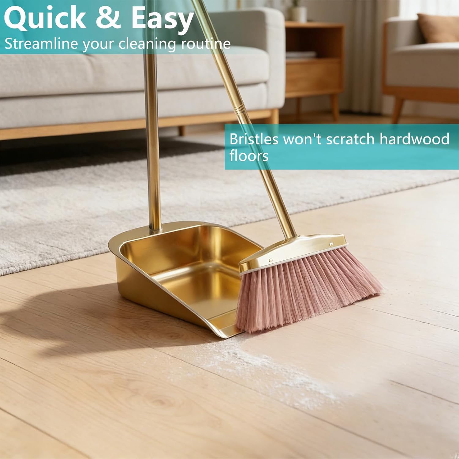 Upgrade your cleaning routine with this premium stainless steel broom and dustpan set. The long-handle design eliminates the need to bend while sweeping, making cleanup tasks more comfortable and efficient. The heavy-duty construction and windproof design make it ideal for both indoor and outdoor use, from kitchen floors to patios. The standing dustpan design allows for convenient storage and quick access when needed. Perfect for home maintenance, this versatile set combines durability with practical features for effective sweeping in any setting. The thoughtful design includes a secure lock mechanism to keep the broom and dustpan together when stored, while the ergonomic handles provide a comfortable grip during use.