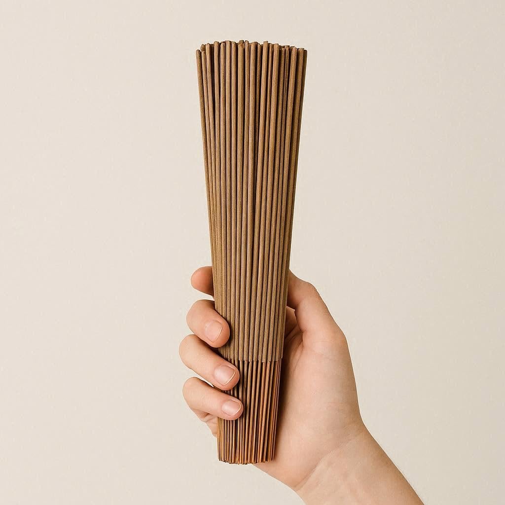 This incense brings the authentic, sacred fragrance of India directly to your home. Handcrafted by traditional artisans using 100% natural and organic ingredients, this 250-gram pack contains approximately 300 premium incense sticks. Each stick burns for 45 to 60 minutes, releasing a rich, sweet aroma that evokes the spiritual atmosphere of traditional Indian temples. Perfect for meditation, yoga practice, or creating a peaceful ambiance, these incense sticks help promote calmness, spiritual focus, and inner peace. Free from harsh chemicals, this handcrafted incense is ideal for relaxation and energy cleansing rituals. The timeless scent has been cherished for generations for its ability to transform any space into a sanctuary of tranquility. Whether you're seeking to enhance your spiritual practice or simply enjoy a moment of serenity, these authentic Indian incense sticks deliver an unparalleled aromatic experience that soothes the mind and uplifts the spirit.