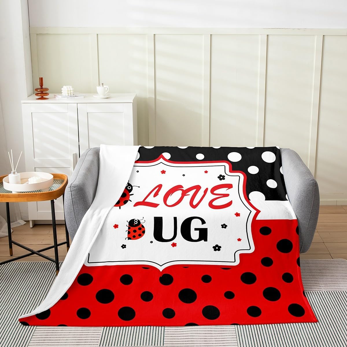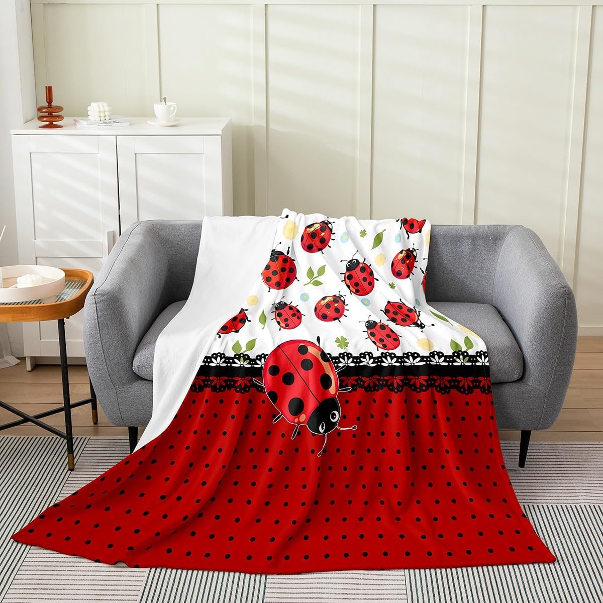 Cute Ladybug Fleece Blanket Kawaii Wild Animals Blanket for Kids Cartoon Ladybugs Throw Blanket Polka Dot Geometric Throw 50x60 Inch Living Room Decor Flannel Blanket
