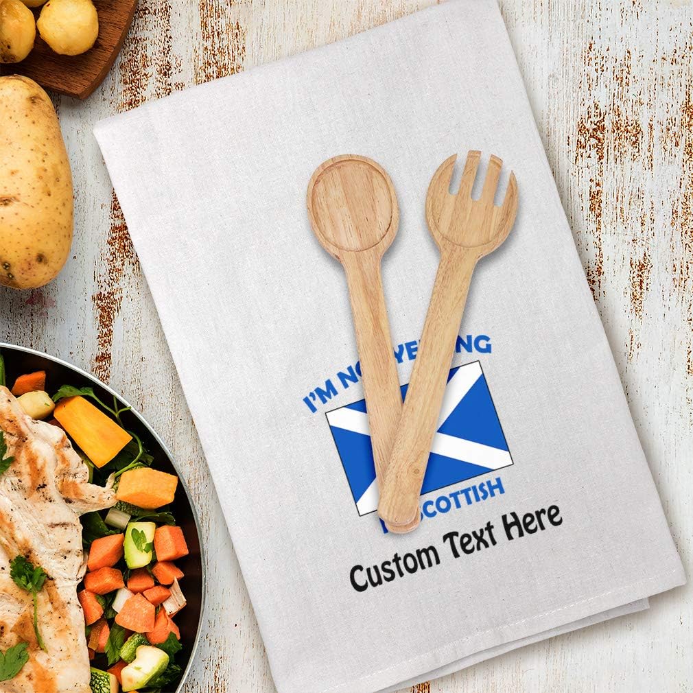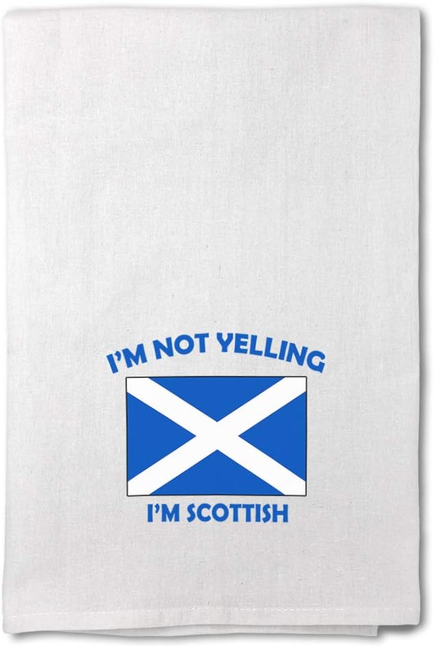 Personalized Kitchen Towels Bar Accessories & Decor Dish Towels Cook in style with our 27x27 inches 100% cotton Eco-friendly kitchen towel. Make this hand towel your best companion. You can use this white hand towel in multiple ways such as drying dishes, wrapping bread, cleaning spills or simply take it with you in your picnic hamper! The design's text reads: GREAT HOUSEWARMING GIFTS IDEA: Unforgettable, our kitchen hand towels are the perfect for birthday gifts, anniversaries, Mother's Days, Father's Day, Valentine's Day, Christmas or any other celebrations. Perfect for someone who is looking for Scottish white hand towels, Scotland kitchen dish towels, Scotland Flag tea towel, Proud Scottish cotton towels, Not Yelling kitchen dish cloths kitchen towels, cotton dish towels, hanging kitchen towels, household essentials, . You can make these large flour sack dish towels one of a kind with our custom option with thousands of designs and graphics available to you. Simply add your personalized text and choose among various fonts and colors! We have more than 12 years of experience in the printing industry to offer you stunning detail and rich lifelike colors. All prints are carefully made in our lab in Tampa, Florida. PERFECT COMPANION FOR COOKING & CLEANING! ** Made from high quality Eco-friendly 100% cotton ** Large size 27x27 inches ** Corner hanger loop for an easy hanging & display ** 4-sided hem for best durability ** Washer & dryer friendly for an easy care ** Design professionally printed ** Multiple usages: cooking, cleaning, drying, wrapping bread, picnic etc...