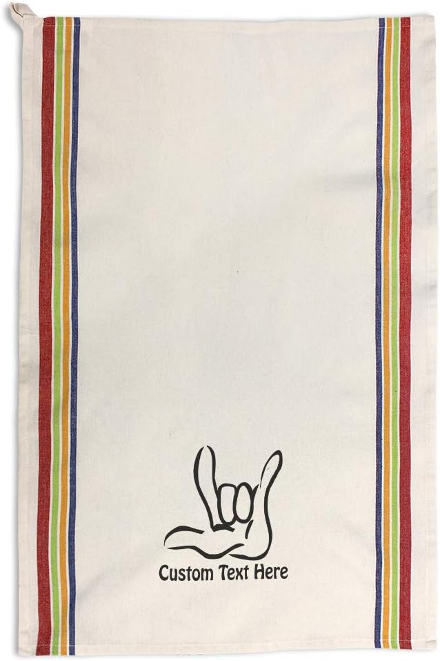 Personalized Kitchen Towels Bar Accessories & Decor Dish Towels Cook in style with our 18x28 inches 100% cotton Eco-friendly kitchen towel. Make this hand towel your best companion when you clean or cook delicious tasty meals in your kitchen. You can use this striped hand towel in multiple ways such as drying dishes, wrapping bread, cleaning spills or simply take it with you in your picnic hamper!The design's text reads: none. GREAT HOUSEWARMING GIFTS IDEA: Unforgettable, our kitchen hand towels are the perfect for birthday gifts, anniversaries, Mother's Days, Father's Day, Valentine's Day, Christmas or any other celebrations. Perfect for someone who is looking for Accent white hand towels, Dialect kitchen dish towels, Expression tea towel, Jargon cotton towels, Vocabulary kitchen dish cloths monogram gifts kitchen towels, personalized gifts cotton dish towels, hanging kitchen towels, household essentials, . You can make these large flour sack dish towels one of a kind with our custom option with thousands of designs and graphics available to you. Simply add your personalized text and choose among various fonts and colors! Our designs are professionally printed on our dishcloths for kitchen with state-of-the-art equipment guaranteed to last for years. PERFECT COMPANION FOR COOKING & CLEANING! ** Made from high quality Eco-friendly 100% cotton ** Large size 18x28 inches ** Corner hanger loop for an easy hanging & display ** 4-sided hem for best durability ** Washer & dryer friendly for an easy care ** Design professionally printed ** Multiple usages: cooking, cleaning, drying, wrapping bread, picnic etc...