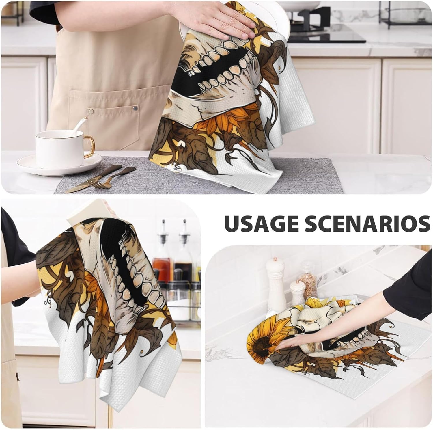 2 Pack Kitchen Towel Absorbent Tea Towel for Kitchen Drying, Kitchen Dish Cloth 16 x 26 inch Hand Towel Specification: Material: Polyester, Nylon Size: 16 x 26 inch Package: Kitchen towel set of 2 Features: Highly Absorbent: Kitchen cloth are made from microfiber,the waffle weave dish cloth increase the absorbance area, effortlessly absorb water while enjoying a soft, comfortable touch with no residual lint or scratches. Application: It can be used as dish cloth, drying mat, figertip, hand towel and tea cloth. An ideal present for easter, mother's day, father's day, birthday, housewarming,thanksgiving, christmas and memorial day. Hanging Towel: Equip with a hanging loop for easy store and not occupy too much space. Easy Care: This kitchen towel is machine washable, dryer safe and easy to care for. Our high-quality cotton is durable and will last after many washes. These reusable kitchen towels are environmentally friendly and an alternative to paper towels. Vibrant Design: We offer a variety of designs, colors and styles to embellish your kitchen, not only to enhance your kitchen decor, but also to make cleaning up more fun.