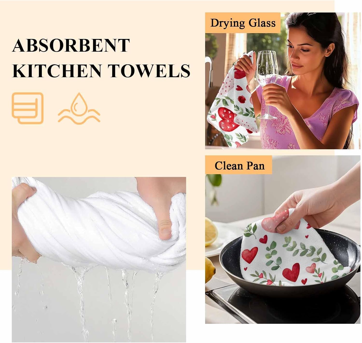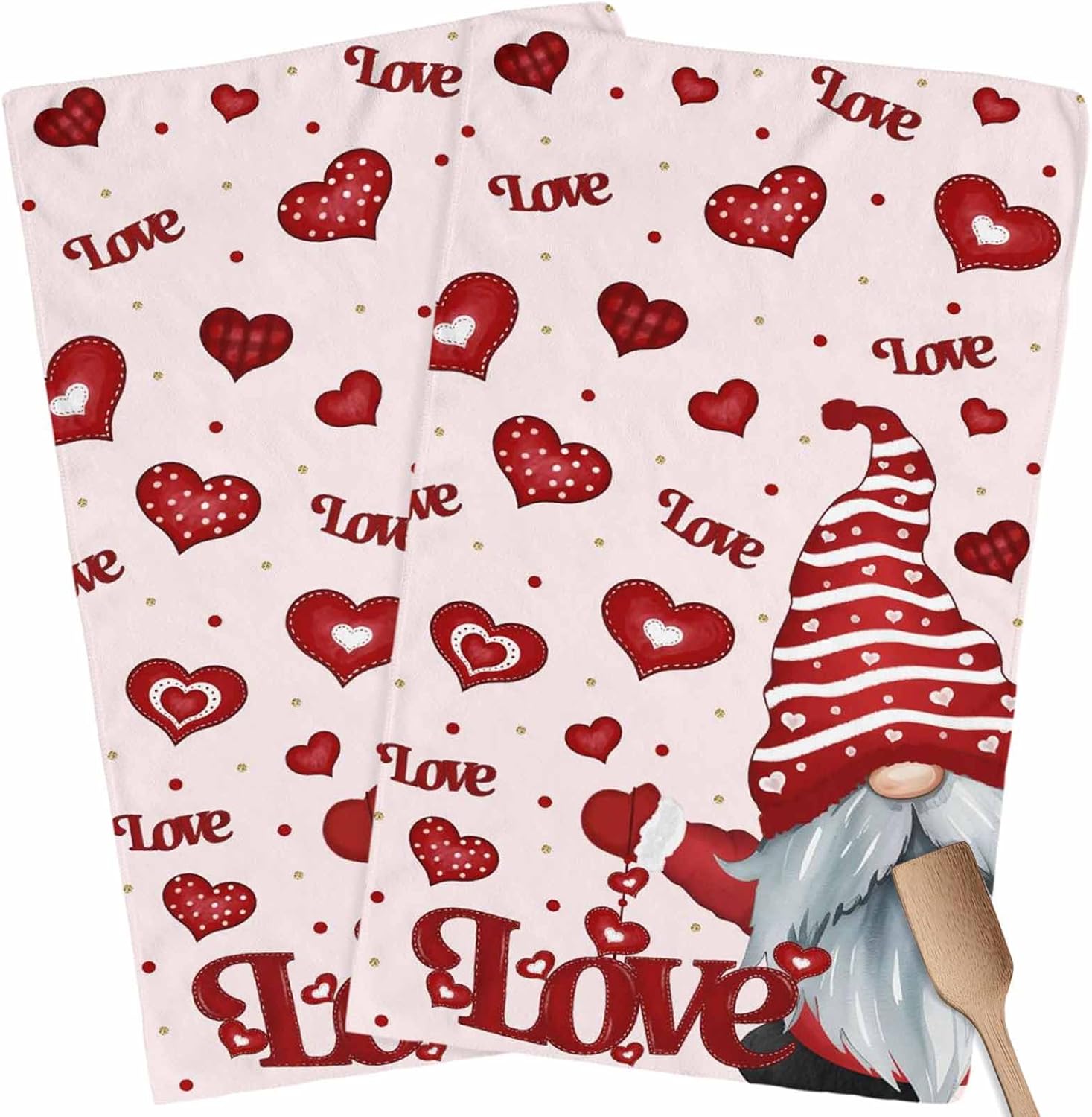 Valentine's Day Kitchen Towel Sets Wedding Anniversary Holiday Decor for HomeProduct DescriptionSize Dimensions:Each Dish Towel 18x28 Inch. Set of 1/2/3/4Durable & Absorbent MaterialThe dish towels for kitchen are made of absorbent microfiber, lightweight, highly absorbent, quick-drying making them perfect for cleaning and suitable for all your household tasks.Ideal Kitchen AccessoriesOur dish towels will refresh your kitchen, is easy to mix and match with other kitchen decorations. Add flair to your kitchen decor with colorful kitchen dish towels.Precise EdgingExquisite edging and cable routing can improve reusability, and it is not easy to tear, wear and lose the thread after cleaning.More Scene UsesBoth decorative and practical, it is an ideal choice for your kitchen, restaurant, hotel, coffee shop, dessert shop, bathroom and other occasions. Great for drying off dishes, these versatile towels are perfect for wiping your hands, cleaning up kitchen counters, carrying hot dishes, and much more. They can be hung anywhere after use.Vibrant Pattern & Perfect GiftOur hand towels come in a variety of vibrant colors and patterns for each season and occasion. Give your space a real personality, the perfect gift for various holidays.Easy to CareMachine washing in cold, do not bleach, tumble dry low and low iron if needed.