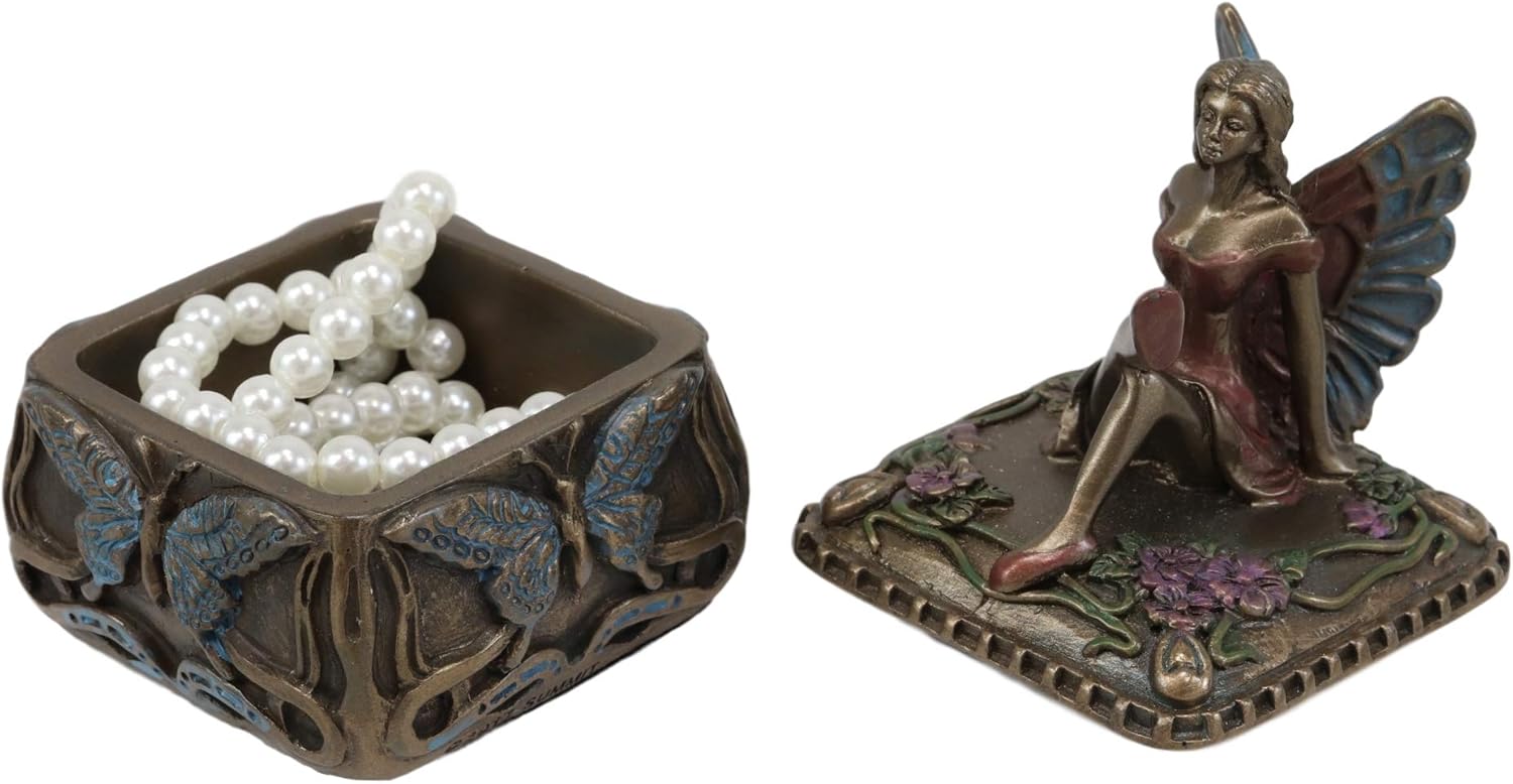 This beautiful fairy box is beautifully crafted and is finished with bronze powder. The detail and workmanship of this item is second to none. It is perfect for fairy lovers!