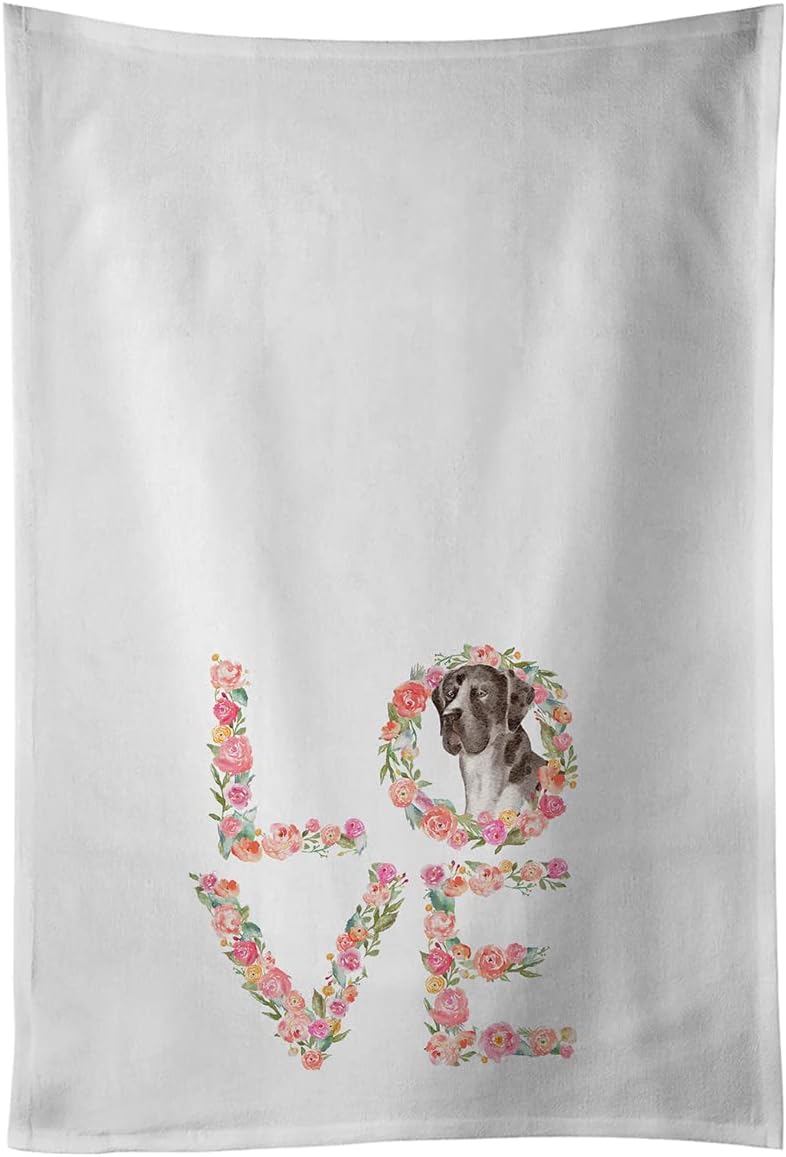 White Kitchen Towel Set of 2 Dish Towels featuring breed specific Border Collie artwork. Celebrate Valentine's Day with this Valentine's Day Kitchen Cotton Towels. This White Kitchen Towel Set of 2 Dish Towels is from Caroline's Treasures collection LOVE. Beautiful artwork from one of our artists makes this a great gift and a great addition to any kitchen. A set of Two Kitchen Towels that are 100 percent cotton. Each white towel measures 19 inches by 28 inches. Each towel features a printed full color artwork design. Machine wash cold and dry with low heat. Always use a pressing cloth when pressing the design. Do not use bleach on a decorated towel.