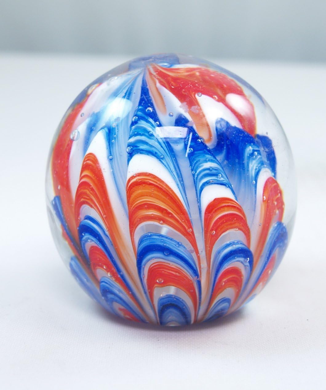This lovely paperweight was handcrafted by skilled artisans who worked night and day to refine his skill. Each piece starts with a designated shape carefully formed by the artist. Through hard work and years of experience the artist creates various designs of vibrant colors and textures which engulf the surface each piece. Usually several layers of assorted colors and designs are rendered--overlapping one another. Once the piece nears the end of completion, it is finished with a clear coat of glass to give it an exquisite glimmering shine.