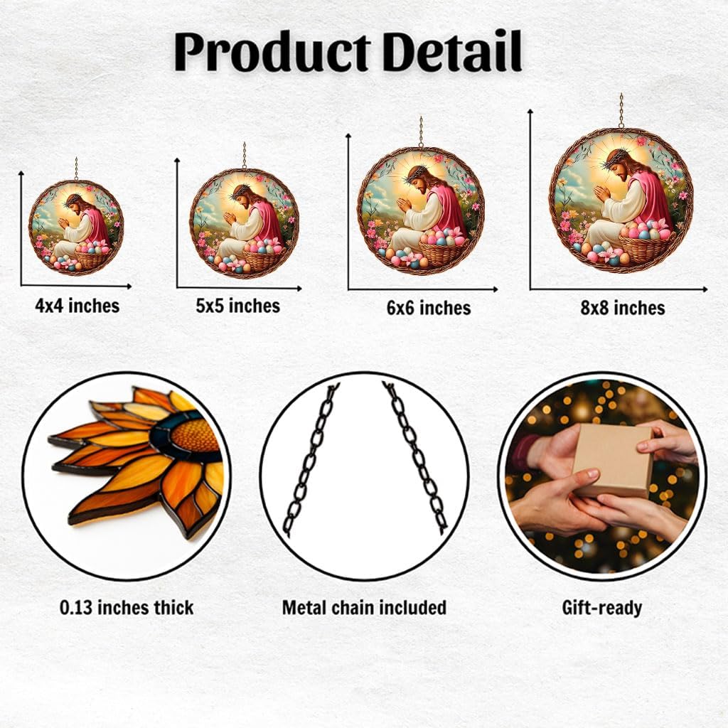 ✦ Bring Brilliance into Your HomeElevate your space with the refined charm of our handcrafted acrylic sun catcher.Fashioned from clear, shatter-resistant acrylic, this radiant piece echoes the beauty of stained glass while remaining lightweight and durable. Suitable for both indoor and outdoor settings, it offers enduring elegance with effortless strength.✦ Lightweight Strength, Lasting BeautyWhether placed in your kitchen, bedroom, balcony, office, or garden retreat, this sun catcher enriches every space with colourful reflections and artistic detail.Its resilient construction delivers vibrant light play and timeless allure—without the fragility of traditional glass.✦ Effortless Hanging, Radiant from Every AngleEach ornament comes with a durable metal chain, making it simple to hang securely anywhere you choose.The vivid double-sided artwork captures and scatters sunlight gracefully, creating dazzling patterns that shift throughout the day.✦ A Gift of Lasting DelightMore than décor, this acrylic sun catcher makes a meaningful present for birthdays, weddings, housewarmings, Valentine’s Day, Mother’s Day, Father’s Day, or festive celebrations.Available in sizes from 4 to 18 inches, it adapts effortlessly to any style of home or living space.✦ Light, Elegance, and Art CombinedExperience the perfect harmony of artistic design, enduring quality, and luminous beauty in this acrylic hanging ornament.Brighten your world with timeless elegance and let sunlight inspire every moment of your day.