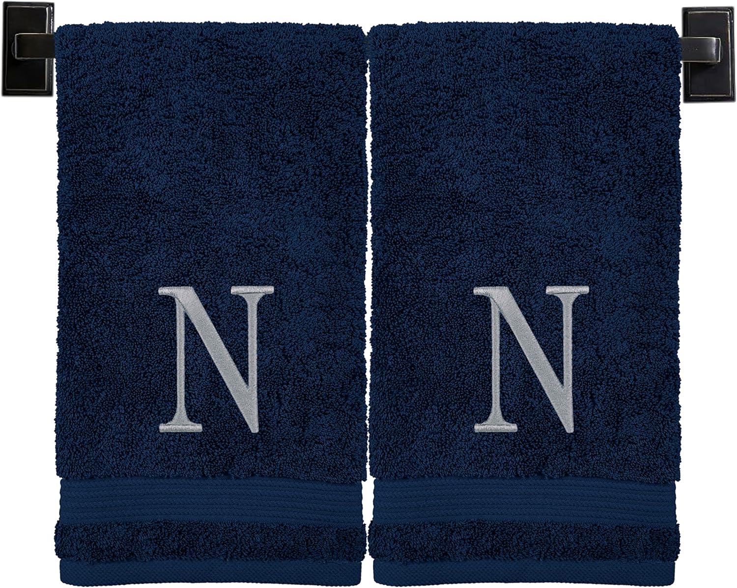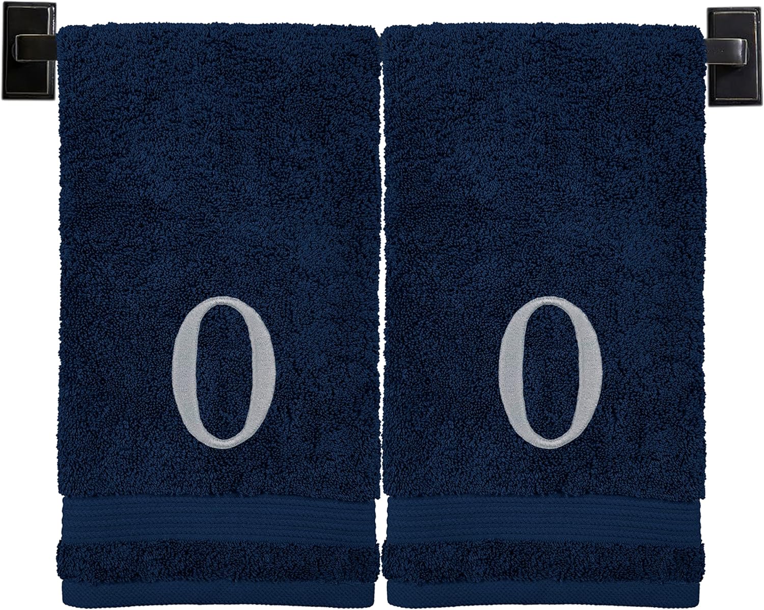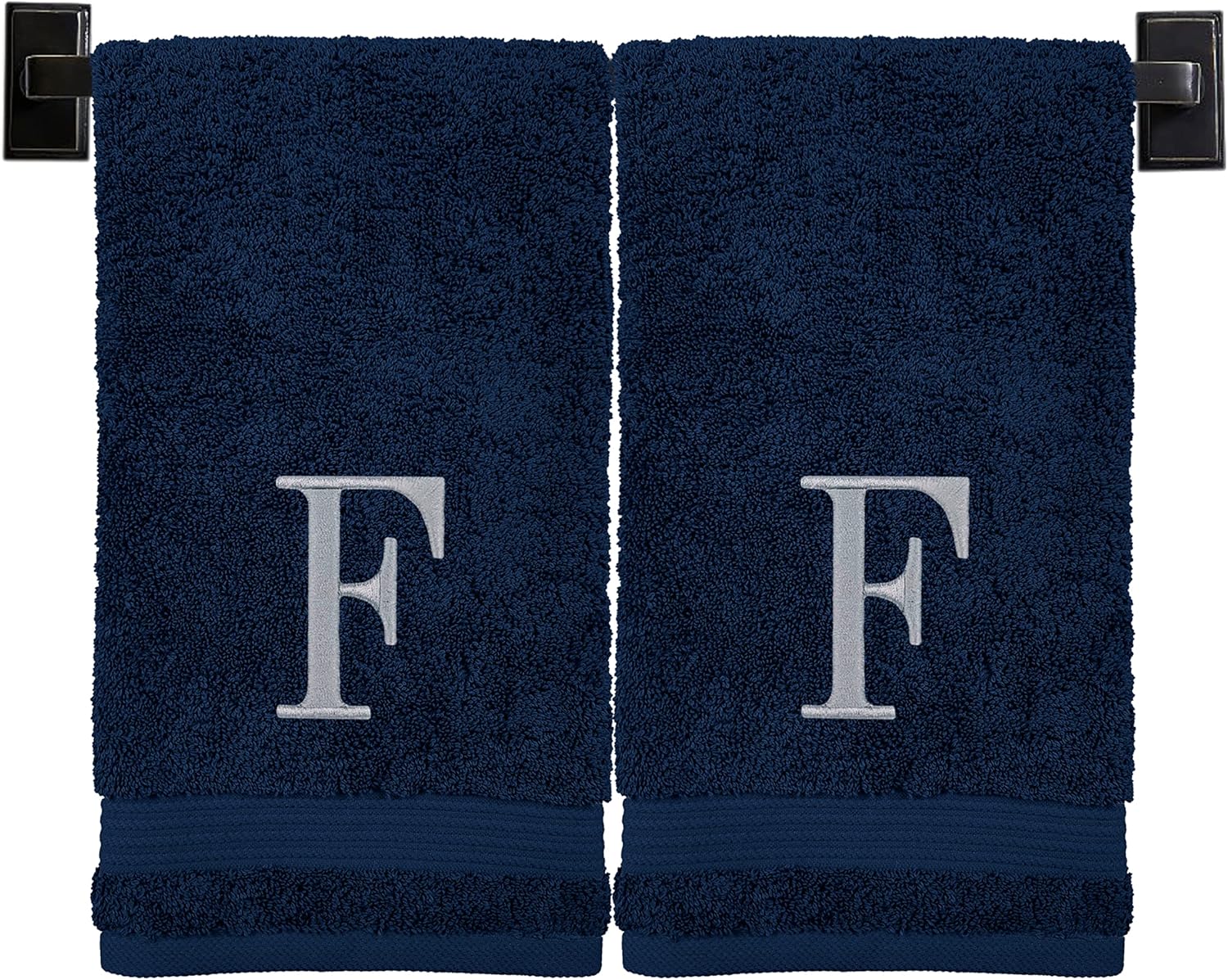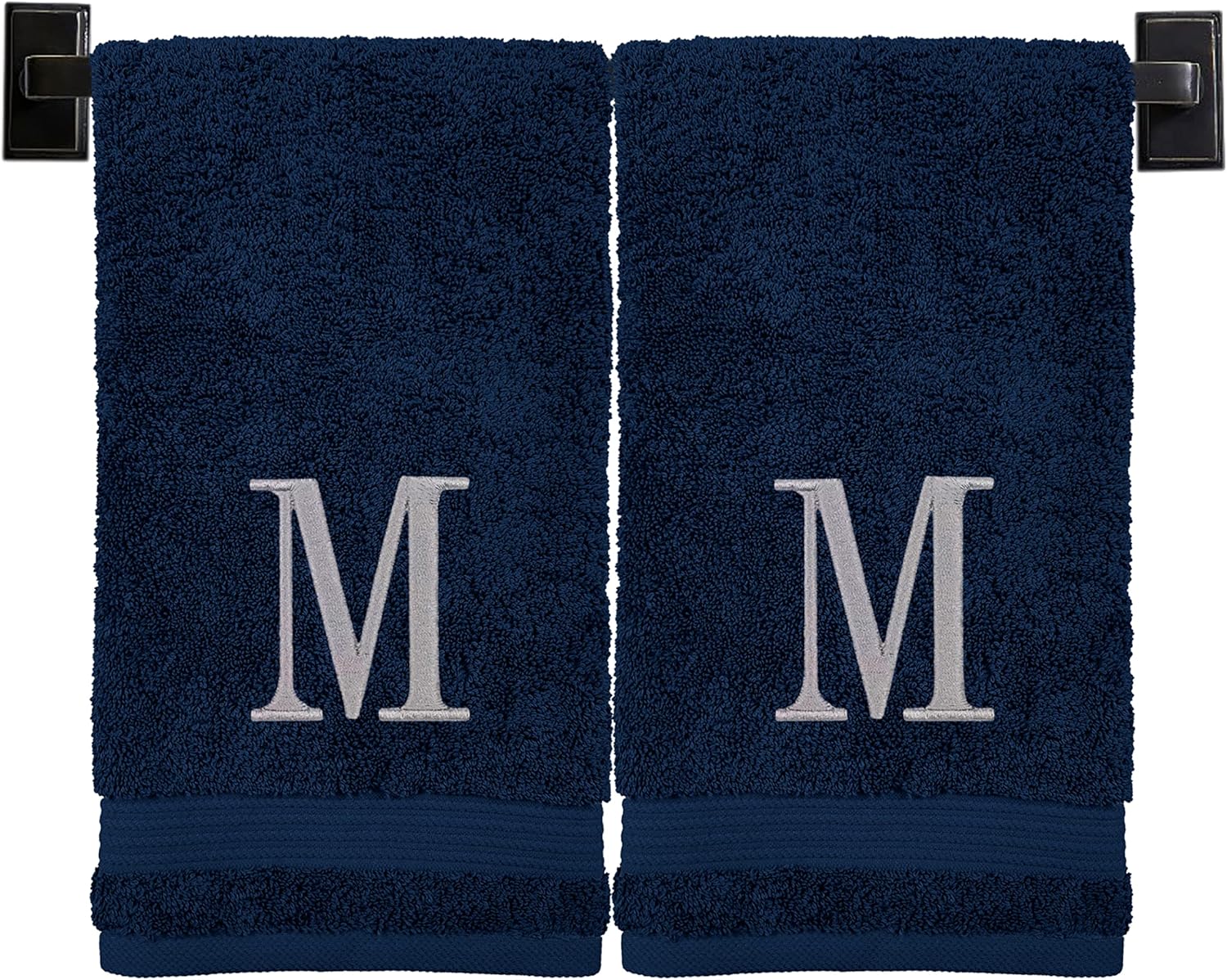 | Model Name | Navy Blue Hand Towels for Bathroom - Silver Monogram |