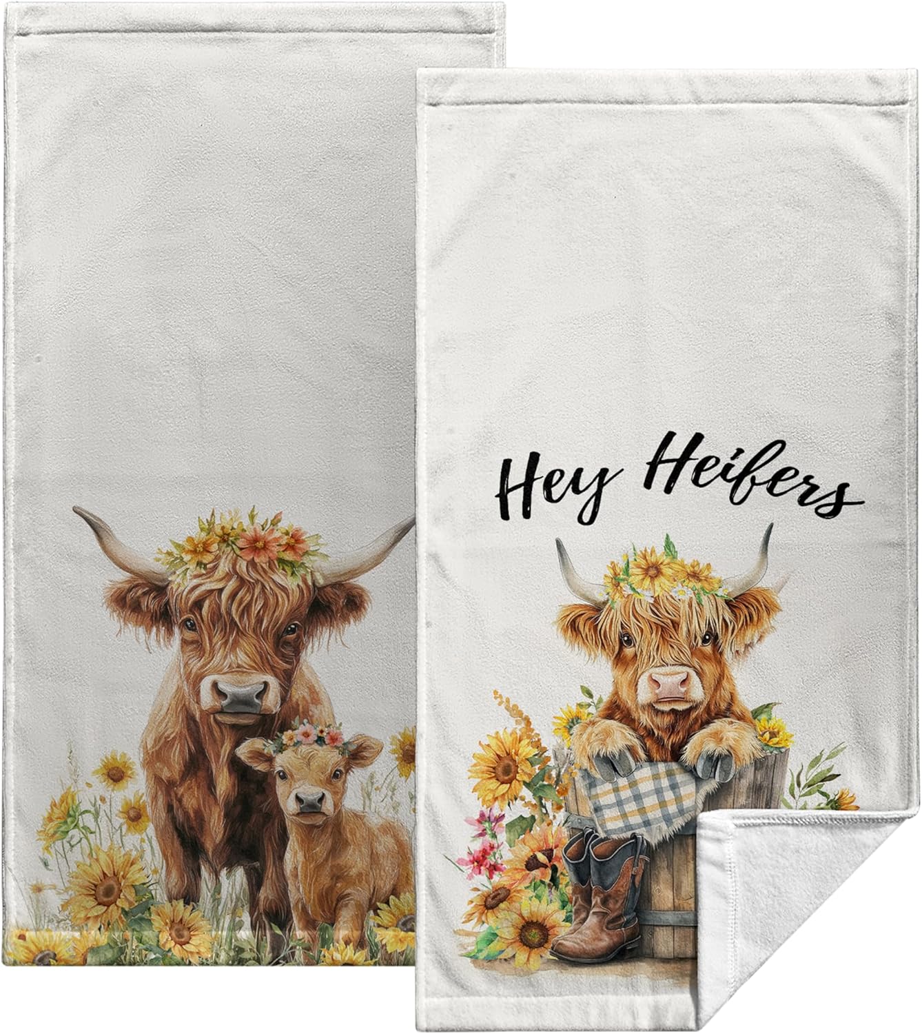 The hand towel: These bath hand towels are made in soft polyester, which made it more soft, and it is more quick dry than usual towels. Material: polyester Features: 1.No fading, soft, easy to carry. 2.Beautiful pattern single side towel, light, breathable, comfortable. 3.Exquisite stitching and folding, very durable and sturdy 4.Strong water absorption and convenient hygiene, suitable for kitchens, bathrooms, toilets, and fingertips. Fashionable Printed: 1.Single-sided printing. 2.The unique design brings the ultimate enjoyment to your daily life. 3.Exquisite patterns match the atmosphere of the holiday season, giving a refreshing feeling Kit Include: Well Package with 2pcs kitchen hand towels sets, exquisite picture also decor your home warm Product Dimension: 14.4 x 28.3 Inch, suitable for for Bath, Hotel, Office, or Gym Indoor & Outdoor Sport Used, Spa, Beach, Pool,etc.