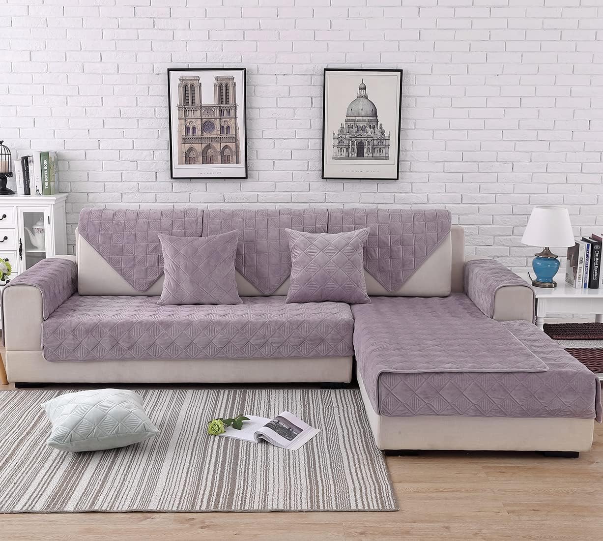 WHAT SIZE SHOULD I ORDER?Please MEASURE your furniture prior to purchasing. Each piece of furniture is unique and we want you to be thrilled with the fit. You can find a detailed size guide below:Sofa, Loveseat & Chair Size:1. 28" Width Series fits for sofa width equal or less than 24". Refer to length, please add extra 4" - 8" longer than actual sofa length.2. 36" Width Series fits for sofa width between 24" to 32". Refer to length, please add extra 4" - 8" longer than actual sofa length.3. 43" Width Series fits for sofa width above 32". Refer to length, please add extra 4" - 8" longer than actual sofa length.Armrest Size Reference:Two sizes for choice: 28" x 28", 36" x 36", please measure and choose suitable size to match.Backrest Size Reference:Backrest width below 32", recommend folding the 28" x 28" rectangular cover to trianglular shape shown in the picture.Backrest width above 32", recommend folding the 36" x 36" rectangular cover to trianglular shape shown in the picture.CAN I USE THIS ON LEATHER FURNITURE?Our slip-resistant protector works great on both fabric and leather furniture. However, because leather furniture does have a smoother surface, you may find that additional adjustments may be necessary.