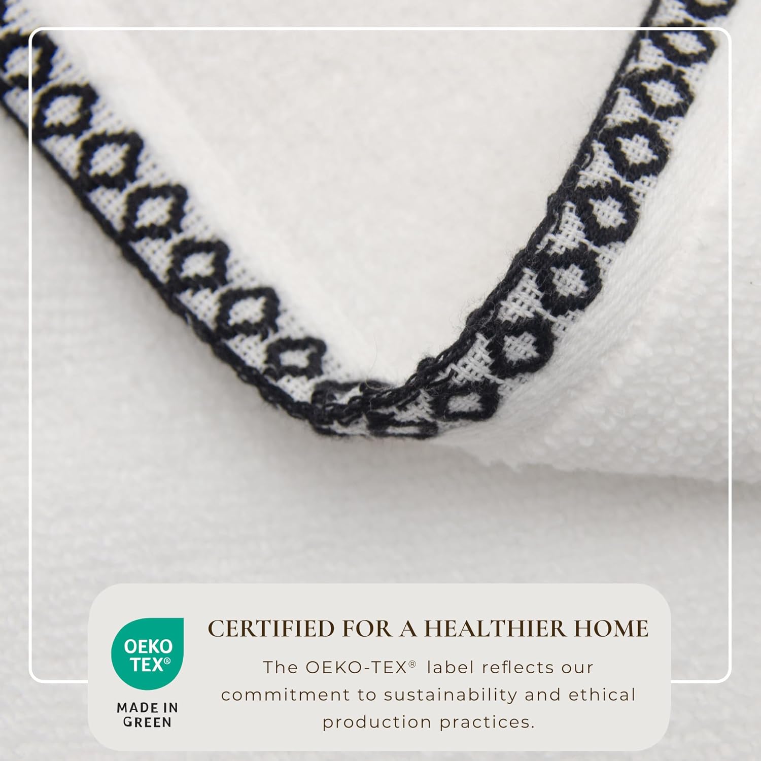 • Certified OEKO-TEX Standard 100: Every piece of these towels has passed safety tests for the presence of harmful substances.