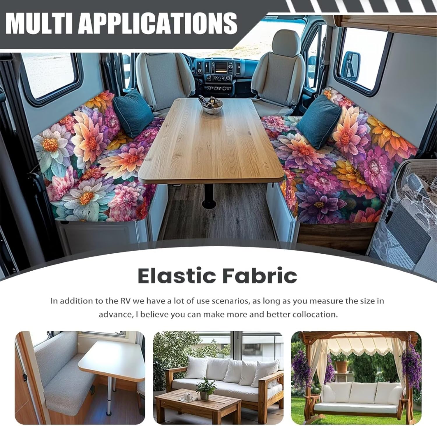 Psesaysky RV Dinette Cushion Covers, Stretch Camper Cushion Slipcovers for Travel Trailer Couch RV Booth Seat, Replacement Camper Sofa Chair Protector 2 Pcs (1 Backrest Cover & 1 Bench Cover), Sofa Slipcovers, Loveseat Slipcovers, RV Interior Parts & Accessories, Automobile Seat Cover Sets Camper Couch Covers for Sofa Bed Furniture Protector-Stretch printed couch covers are created to keep your furniture looking new by safeguarding it from daily wear, scratches, dirt, and dander. Adds a decorative touch to your caravan, giving your sofa a fresh new look while making the cushions more comfortable Easy to Clean-The camper couch covers can be easily removed and washed, which keeps the sofa cushions clean and makes the caravan sofa covers more sustainable. Washing tips: Machine washable, tumble dry low
